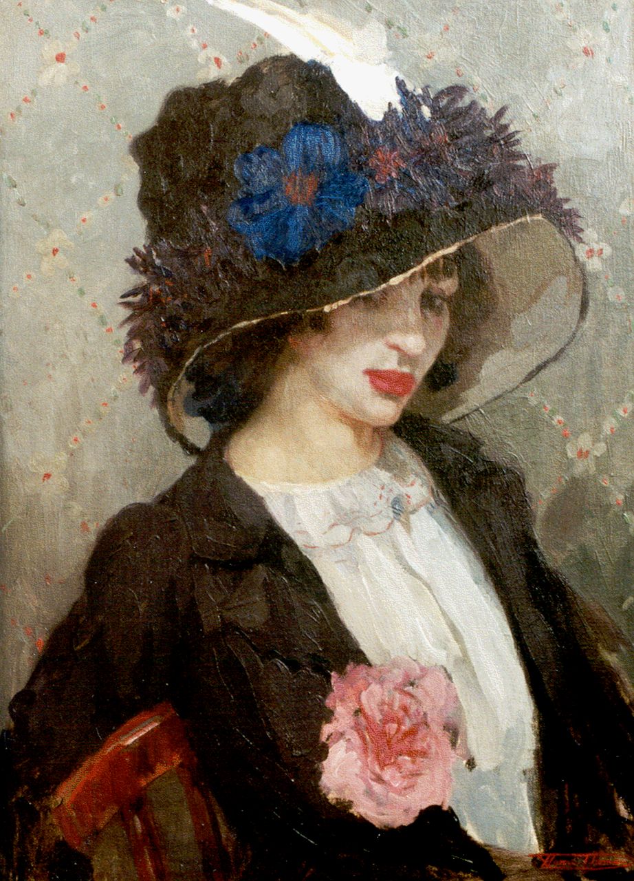 Henri Thomas Kunstwerk • Gemälde • zuvor zu verkaufen An elegant lady with hat