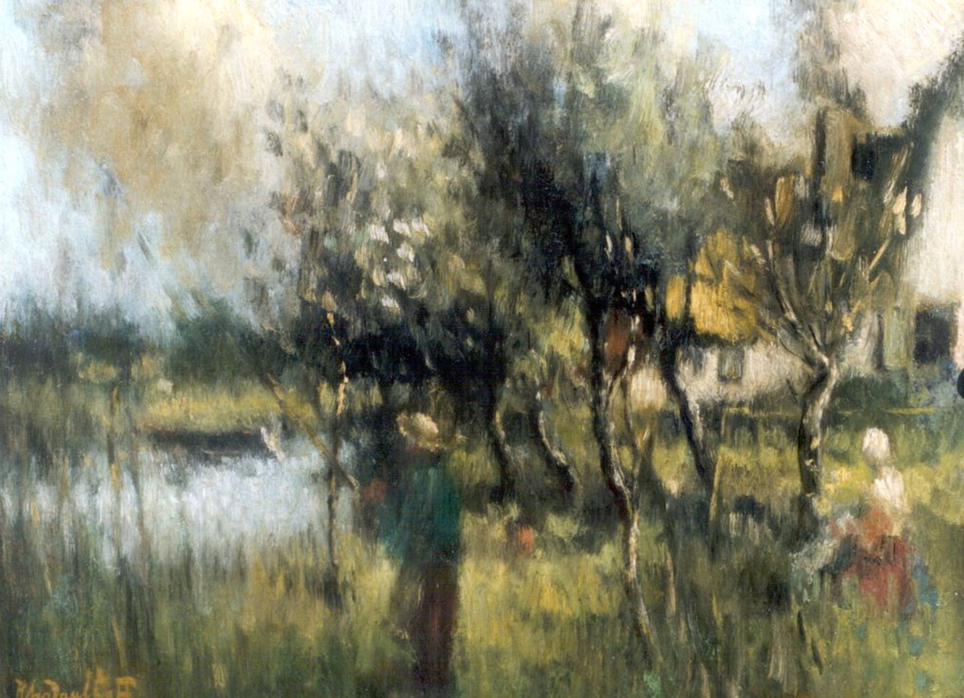 Henri van Daalhoff Kunstwerk • Gemälde • zuvor zu verkaufen Figures on the riverbank