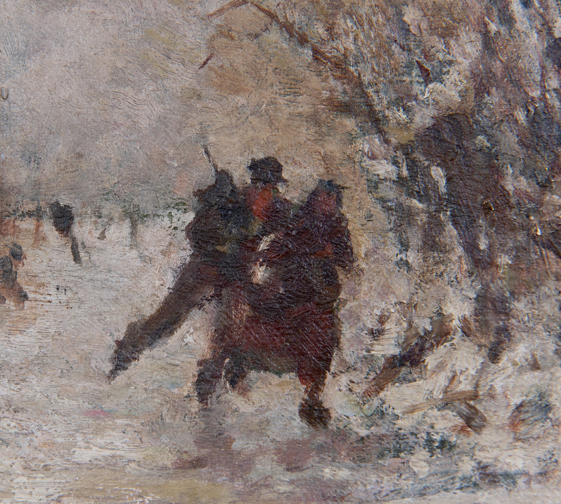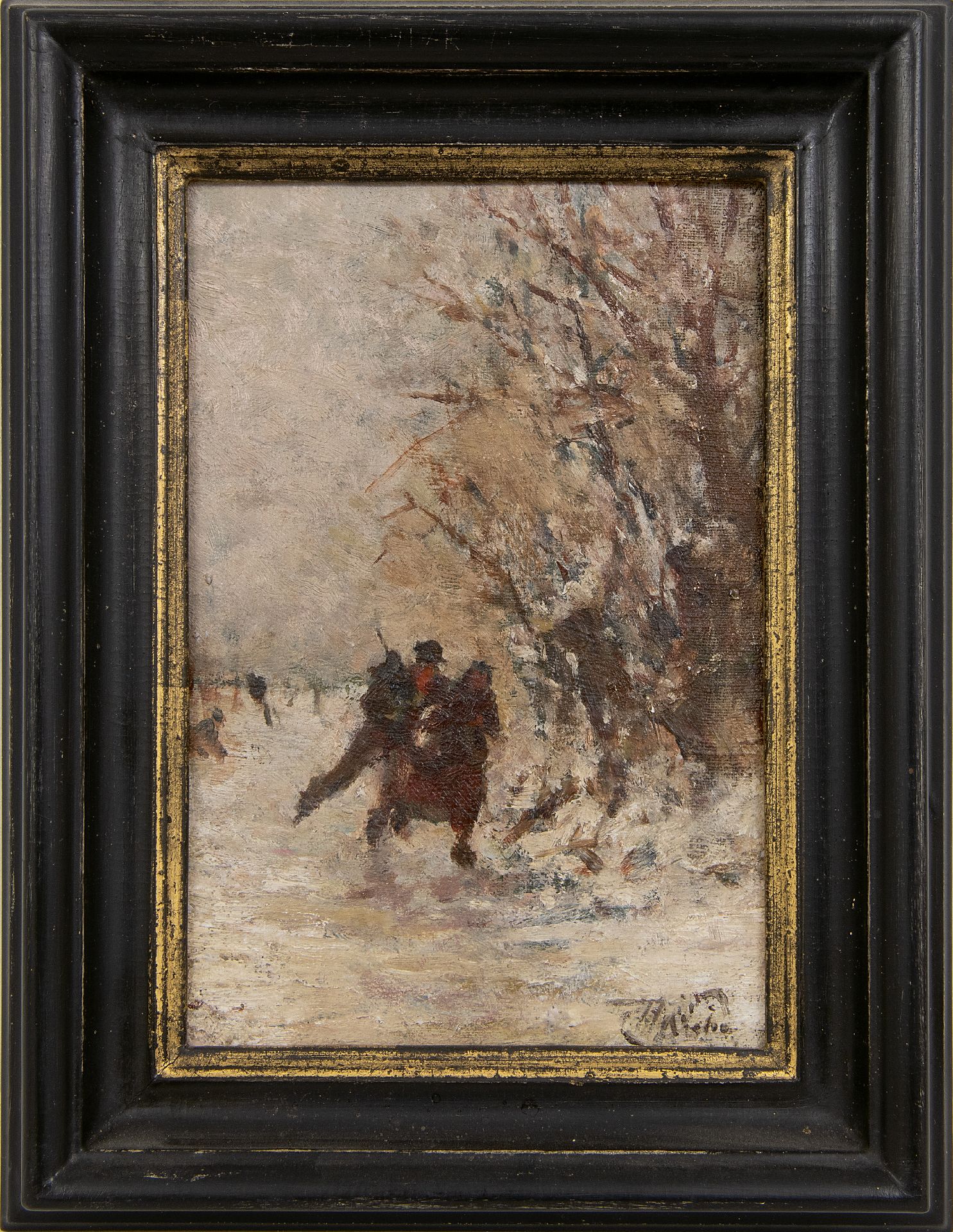 Henri van Seben Kunstwerk • Gemälde • zu verkaufen Eisläuferpaar in einer Winterlandschaft