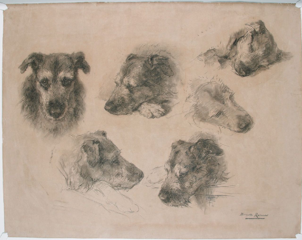 Henriette Ronner Kunstwerk • Aquarell • Zeichnung • zuvor zu verkaufen Studien von einem Hund
