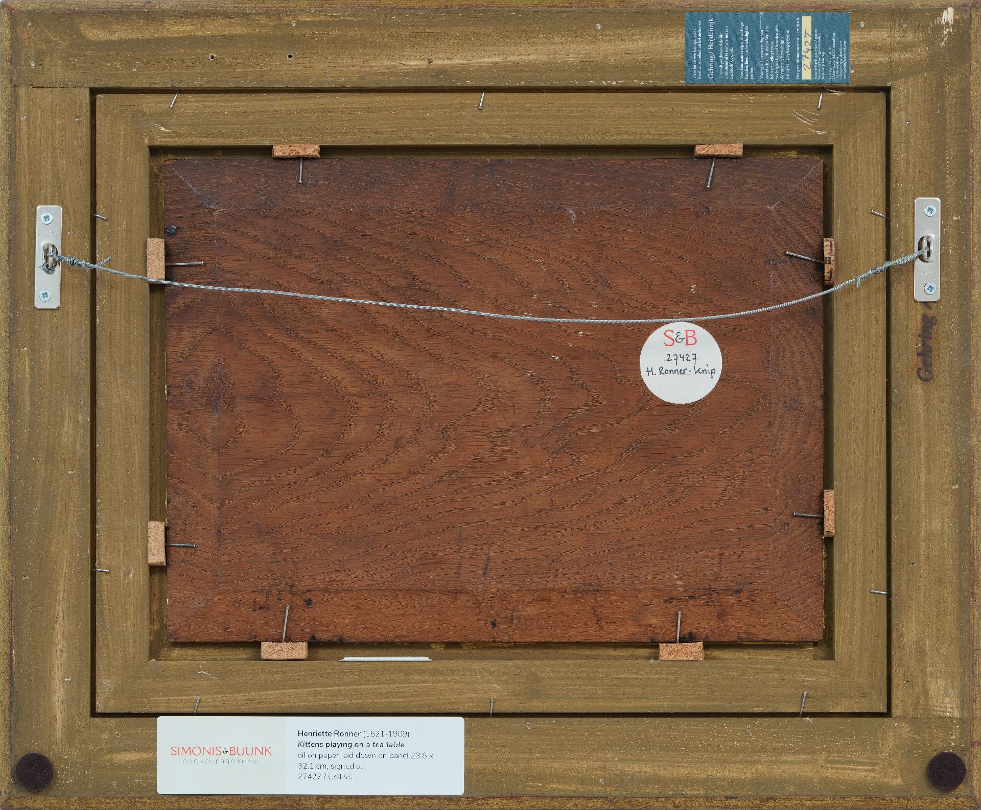Henriette Ronner-Knip malte anfangs Tierstücke und Hunde, nach 1870 namentlich Katzen. Fehlerlos wusste sie die Textur der Felle, Augen und Farben wiederzugeben und traf sie die manchmal ruhige, dann wieder spielerische und untersuchende Art der Katzen. Ihr Werk war namentlich bei dem aufkommenden Besitzbürgertum des 19. Jahrhunderts sehr beliebt. Sie bildete ihre Tiere denn auch spielend und schlafend ab, indem sie auf und über die kostbaren Möbel und luxuriösen Stoffen krochen. Sowohl in den Niederlanden als in Belgien bekam sie wegen ihr Werk einen Orden.