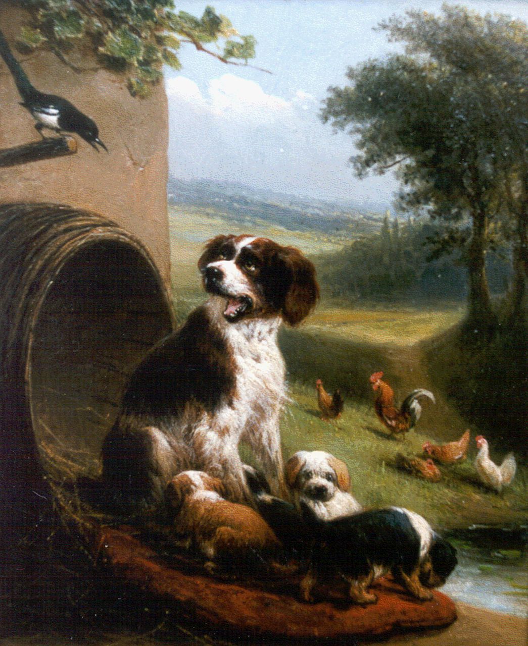 Henriette Ronner Kunstwerk • Gemälde • zuvor zu verkaufen A dog with puppies