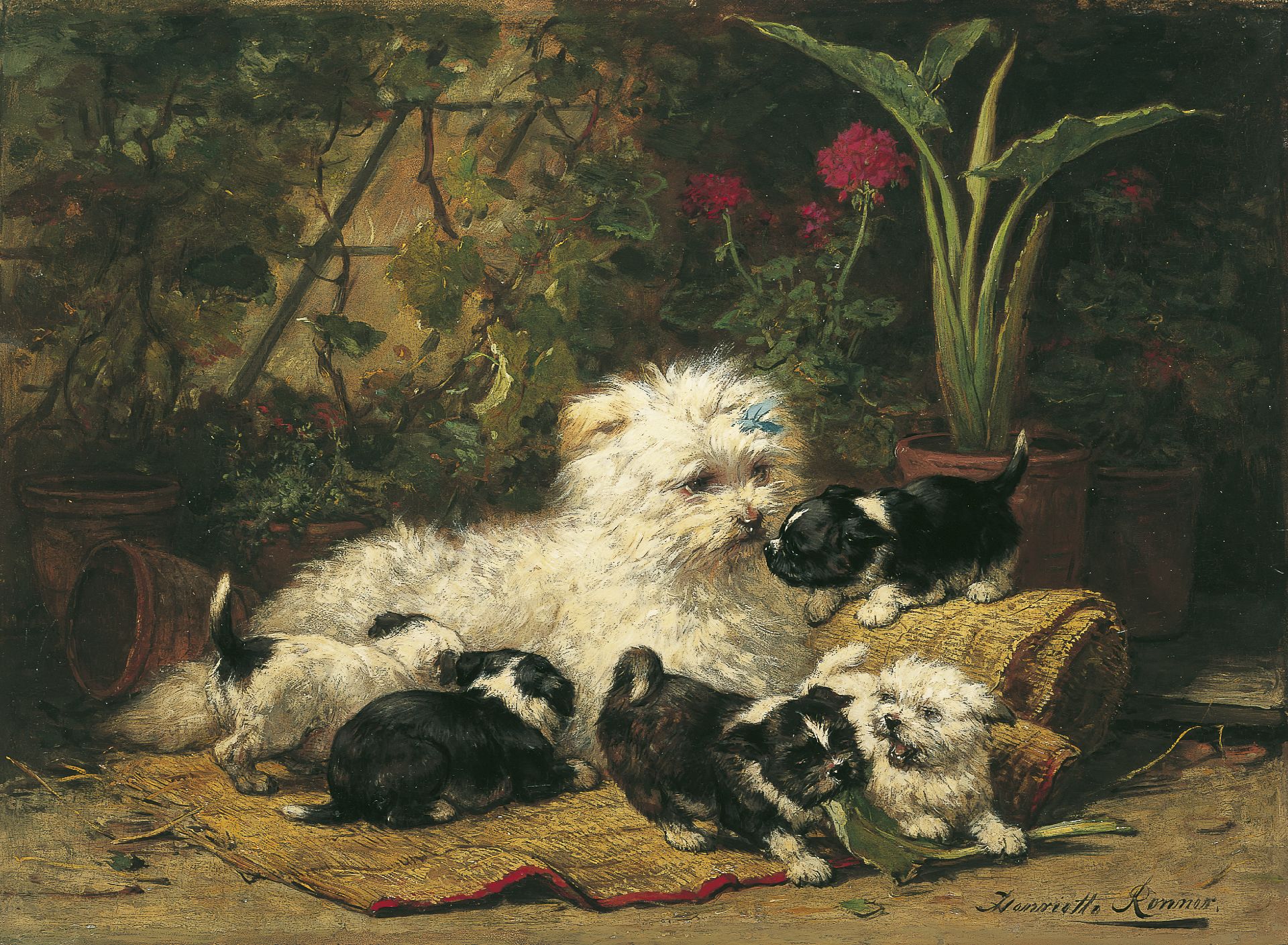 Henriette Ronner Kunstwerk • Gemälde • zuvor zu verkaufen A terrier with puppies