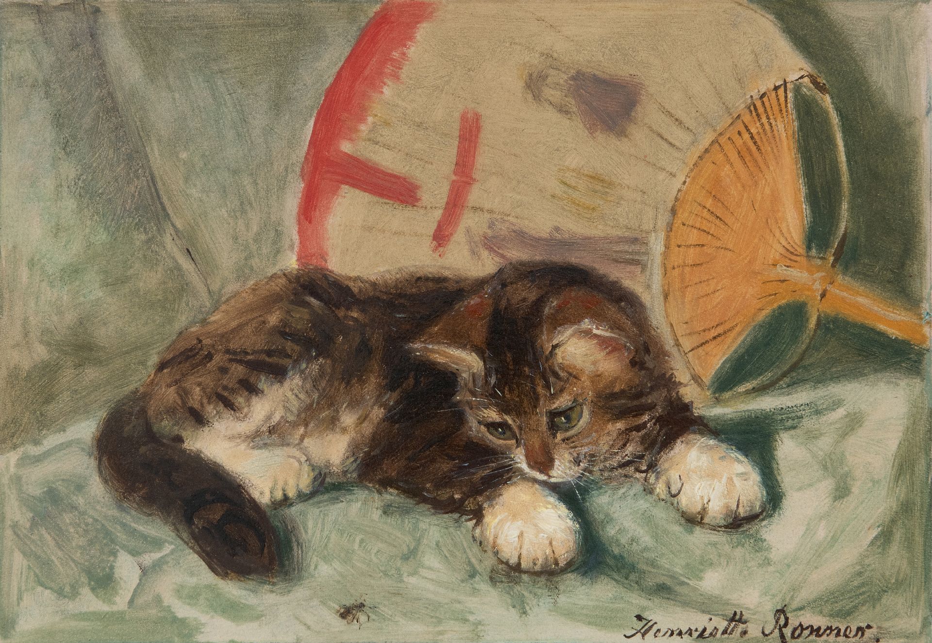 Henriette Ronner Kunstwerk • Gemälde • zuvor zu verkaufen Kätzchen mit einer Fliege