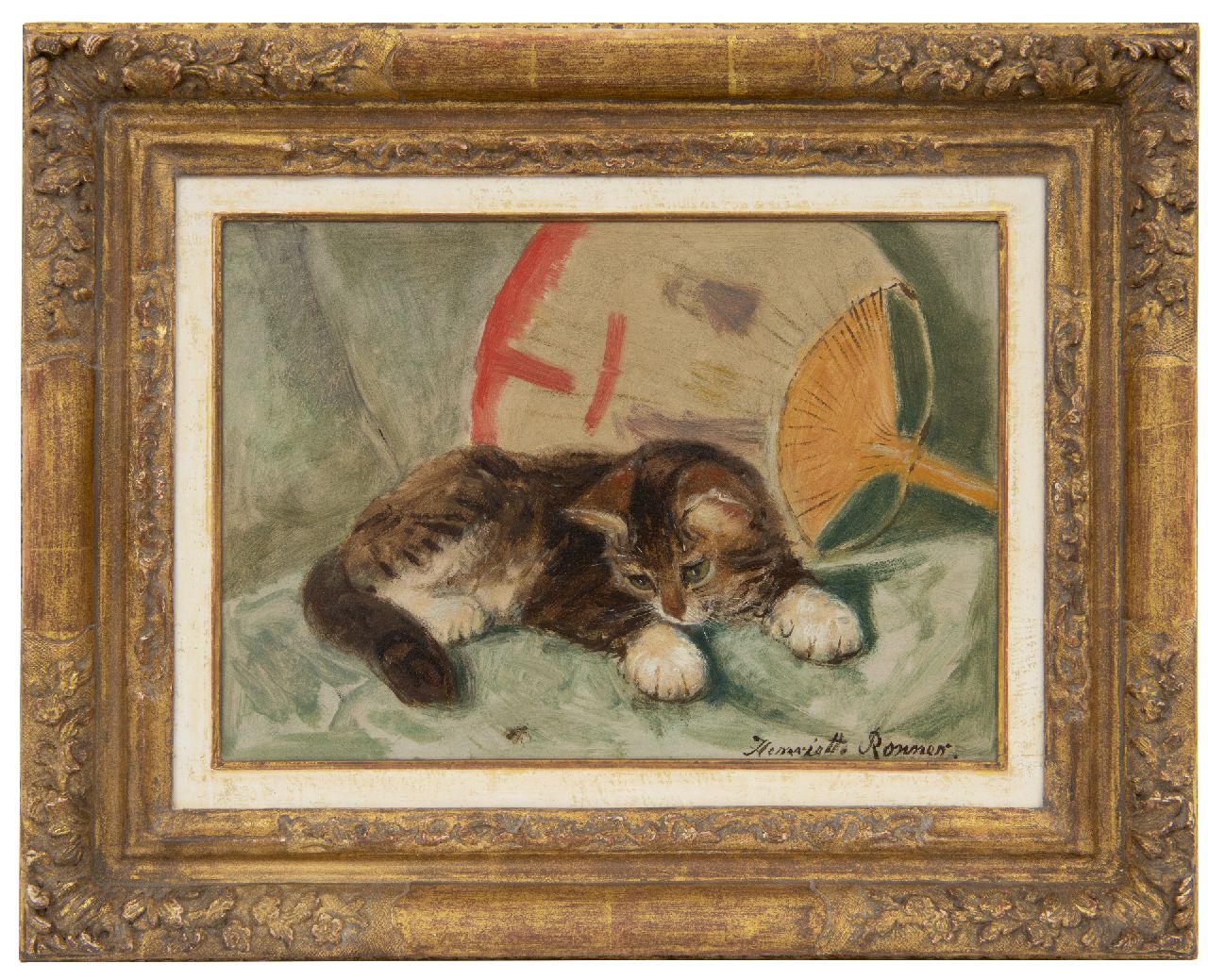 Henriette Ronner-Knip malte anfangs Tierstücke und Hunde, nach 1870 namentlich Katzen. Fehlerlos wusste sie die Textur der Felle, Augen und Farben wiederzugeben und traf sie die manchmal ruhige, dann wieder spielerische und untersuchende Art der Katzen. Ihr Werk war namentlich bei dem aufkommenden Besitzbürgertum des 19. Jahrhunderts sehr beliebt. Sie bildete ihre Tiere denn auch spielend und schlafend ab, indem sie auf und über die kostbaren Möbel und luxuriösen Stoffen krochen. Sowohl in den Niederlanden als in Belgien bekam sie wegen ihr Werk einen Orden.