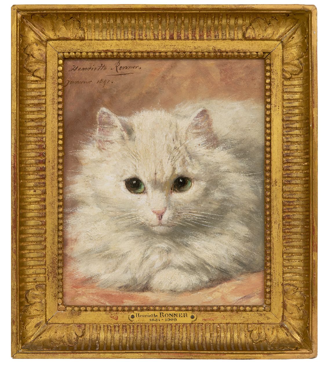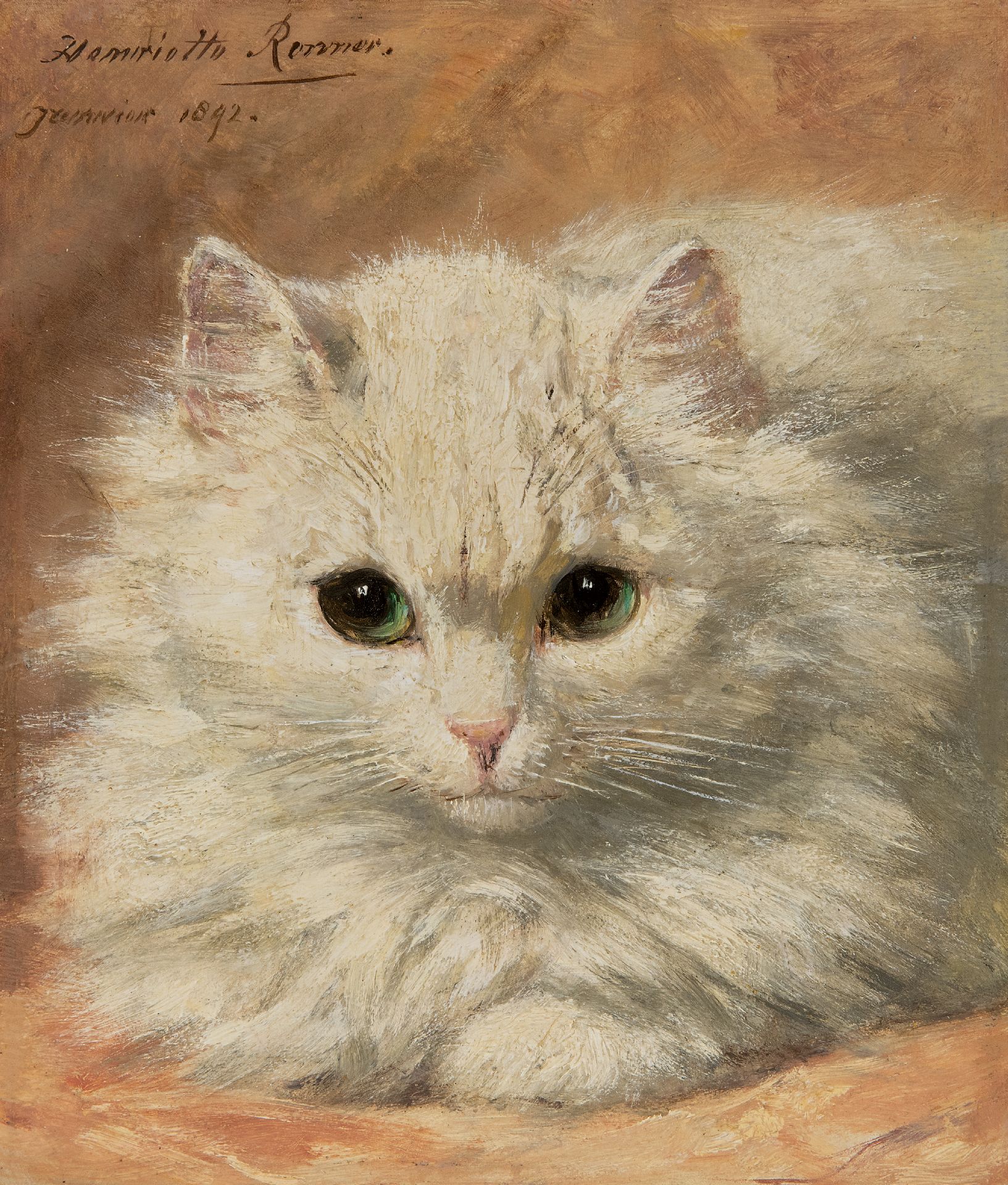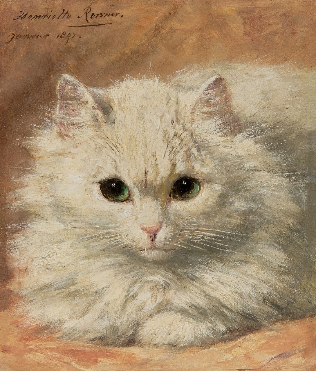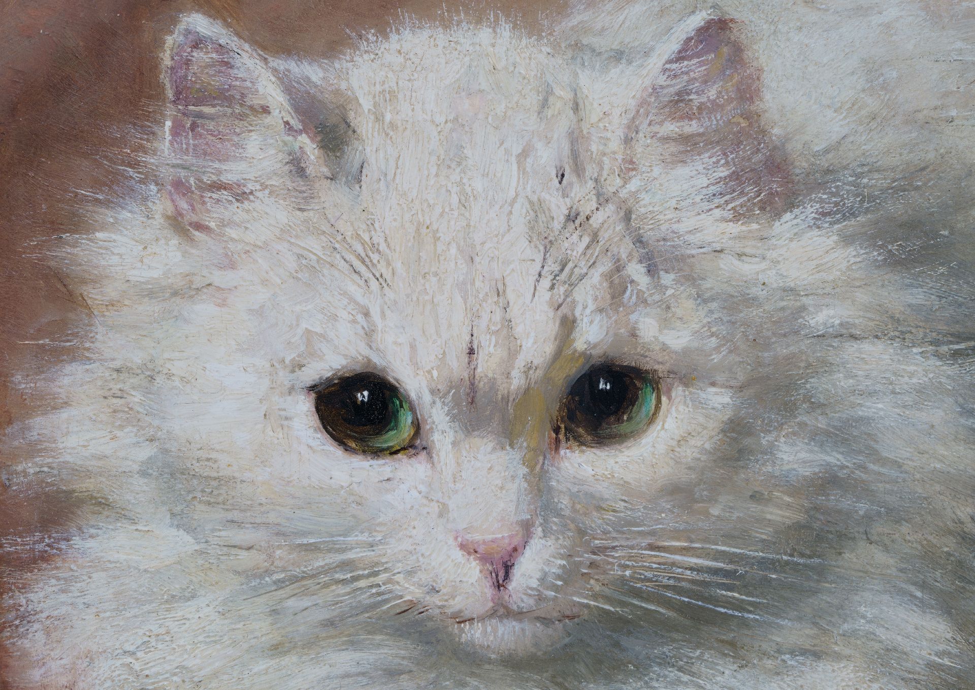 Henriette Ronner Kunstwerk • Gemälde • zuvor zu verkaufen Weißes Angora-Kätzchen