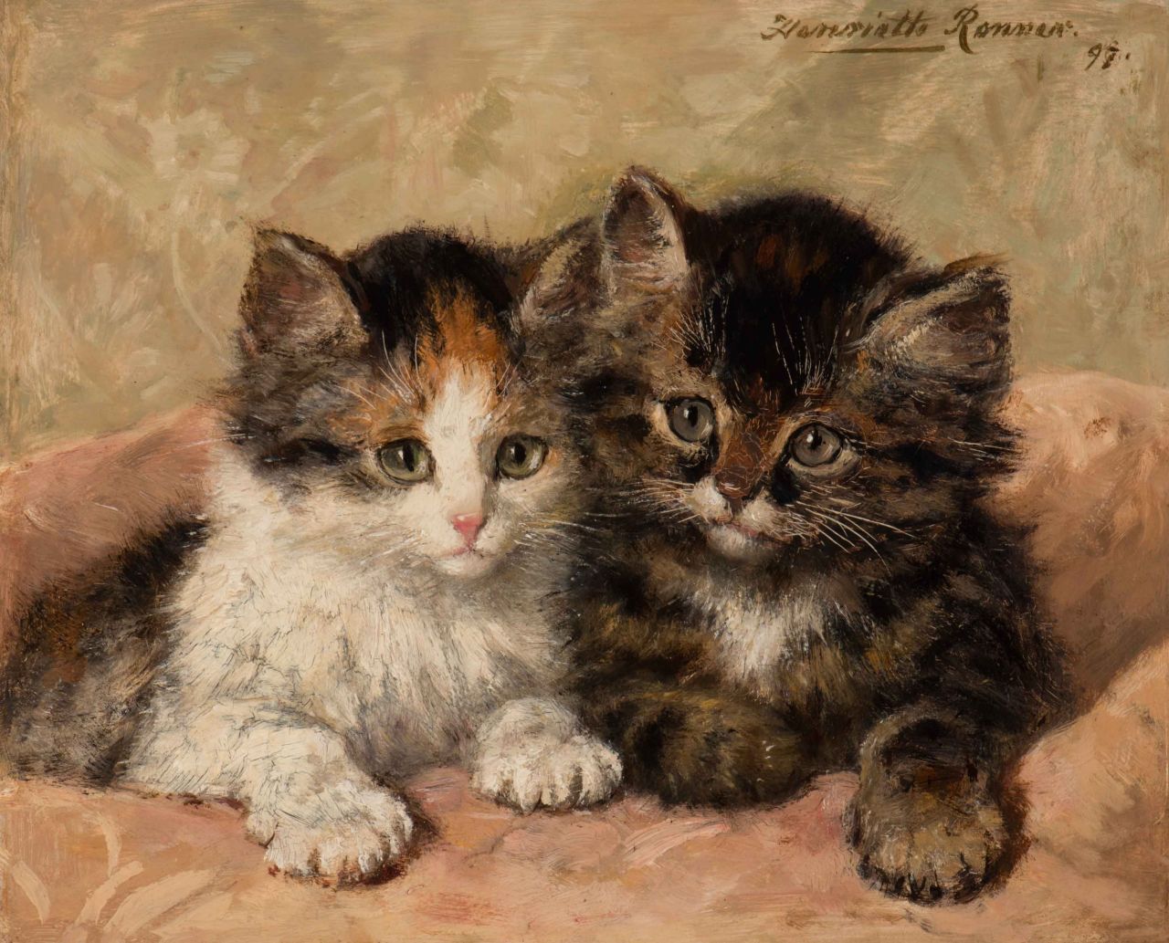 Henriette Ronner Kunstwerk • Gemälde • zuvor zu verkaufen Zwei Kätzchen
