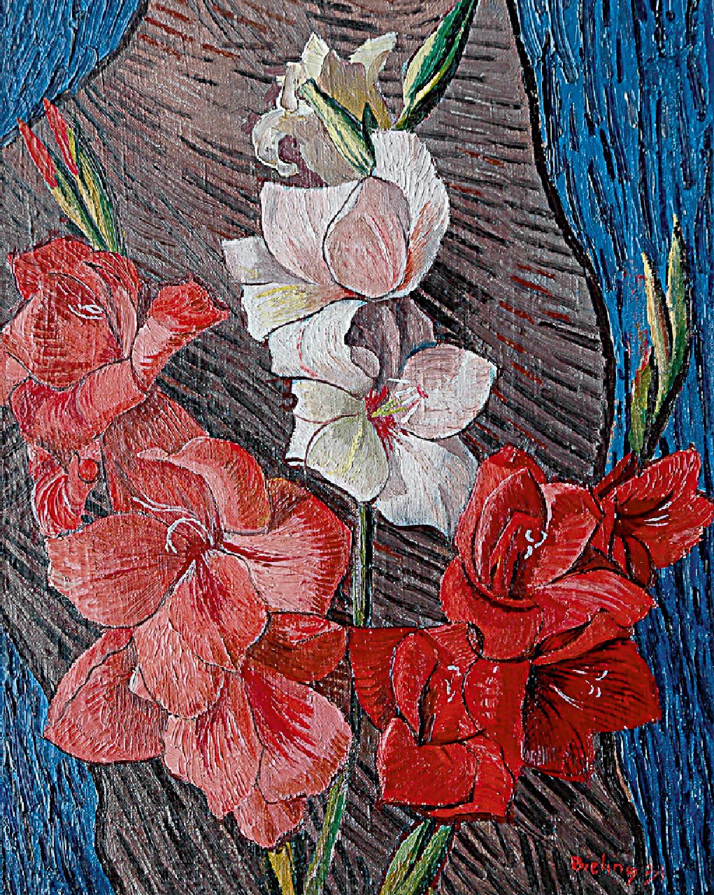 Herman Bieling Kunstwerk • Gemälde • zuvor zu verkaufen Gladiolen