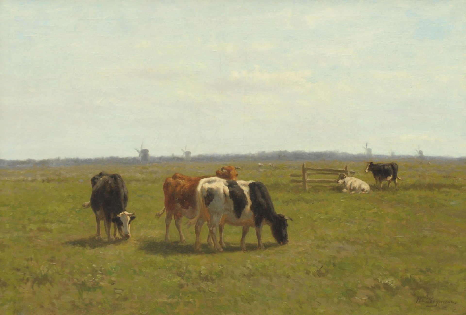Bogman H.C.C.  | Hermanus Charles Christiaan 'Herman' Bogman, Cows in a polder landscape, Öl auf Leinwand 70,5 x 100,8 cm, signed l.r.