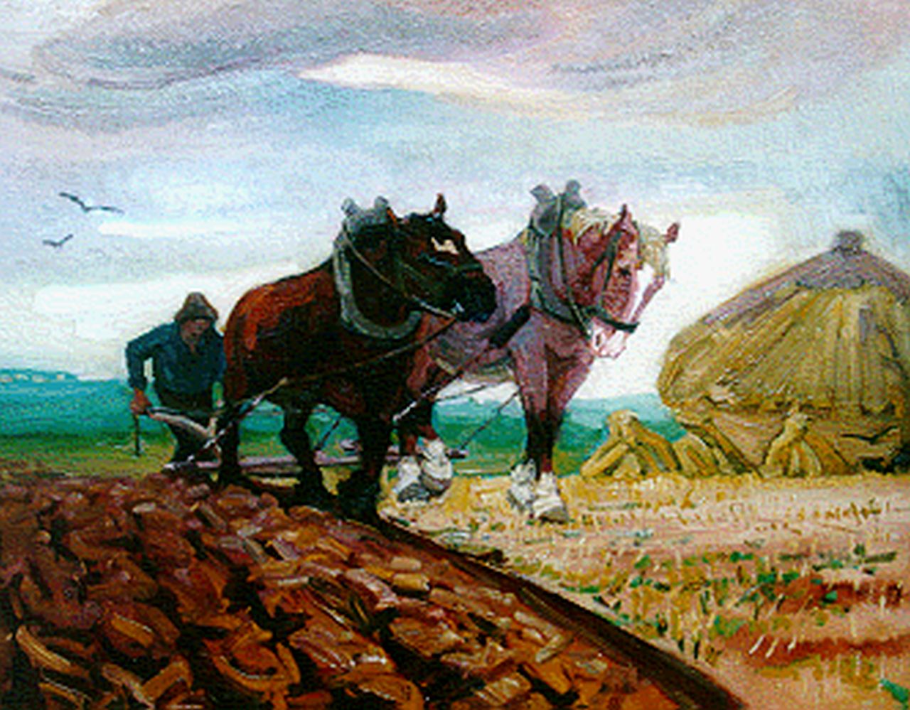 Herman Gouwe Kunstwerk • Gemälde • zuvor zu verkaufen A ploughing farmer