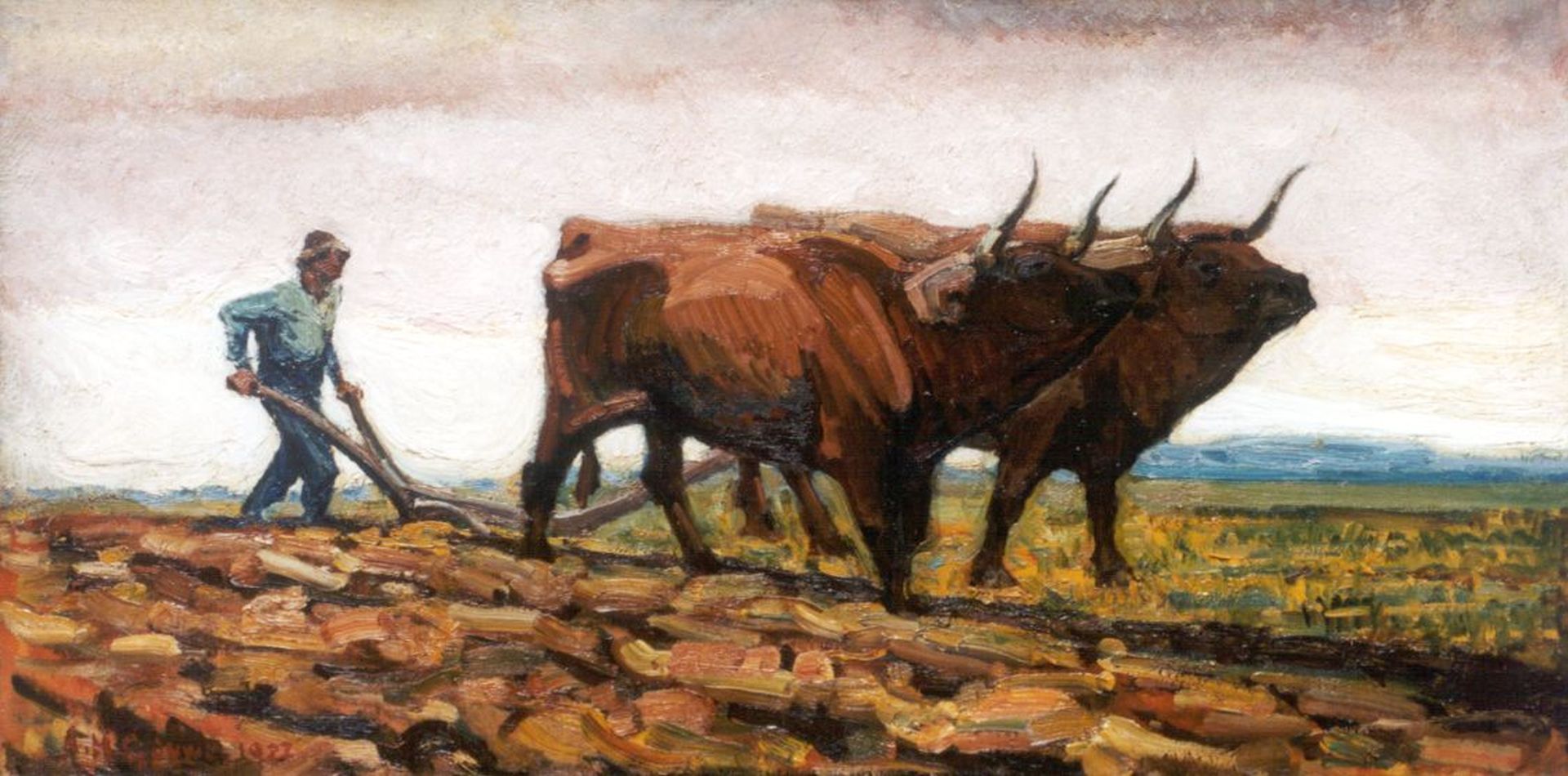Herman Gouwe Kunstwerk • Gemälde • zuvor zu verkaufen Ploughing the fields