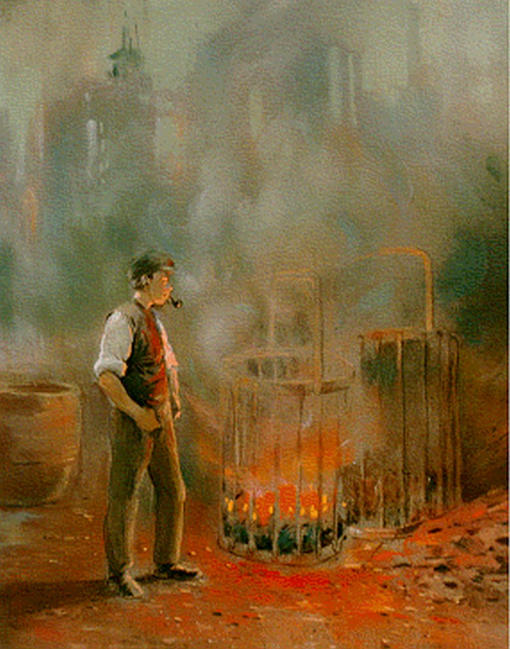 Heijenbrock wird oft der 'Maler von Eisen und Feuer' genannt. Anfangs war er Journalist / Zeichner. Nachdem er 1898 in die belgische Borinage gereist war, begann er, den Arbeiter in einer Welt der Technologie und der Maschinen zu malen. Er fand seine Motive in Minen, Fabriken, Häfen und Eisenhütten. Er entschied sich dafür, nicht das trostlose Leben der Arbeiter zu zeigen, sondern das Heldentum ihrer Arbeit, das von einem heiligen Glauben an den Fortschritt herrührte, den die Technologie dem Menschen bringen würde. Die Erfindung und Anwendung von künstlichem Licht faszinierten ihn als besondere Erfolge der Technik.