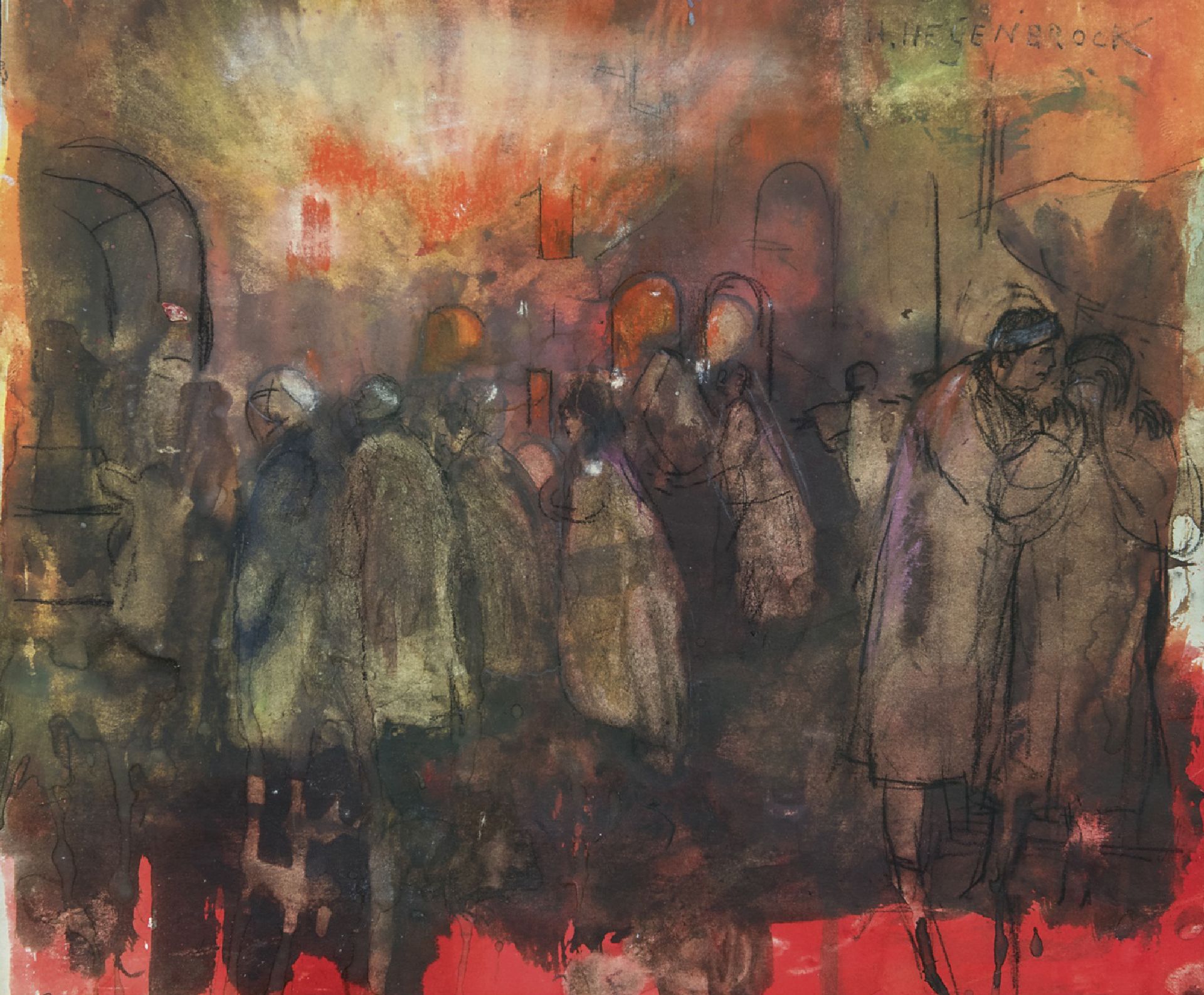 Herman Heijenbrock Kunstwerk • Aquarell • Zeichnung • zu verkaufen Das Feuer, Scheveningen