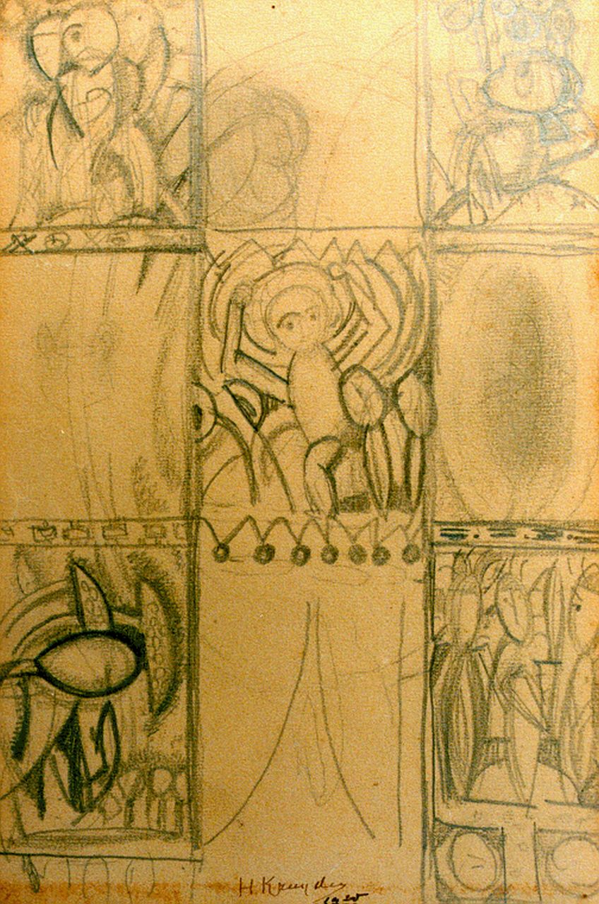 Herman Kruyder Kunstwerk • Aquarell • Zeichnung • zuvor zu verkaufen Leaded window (design)