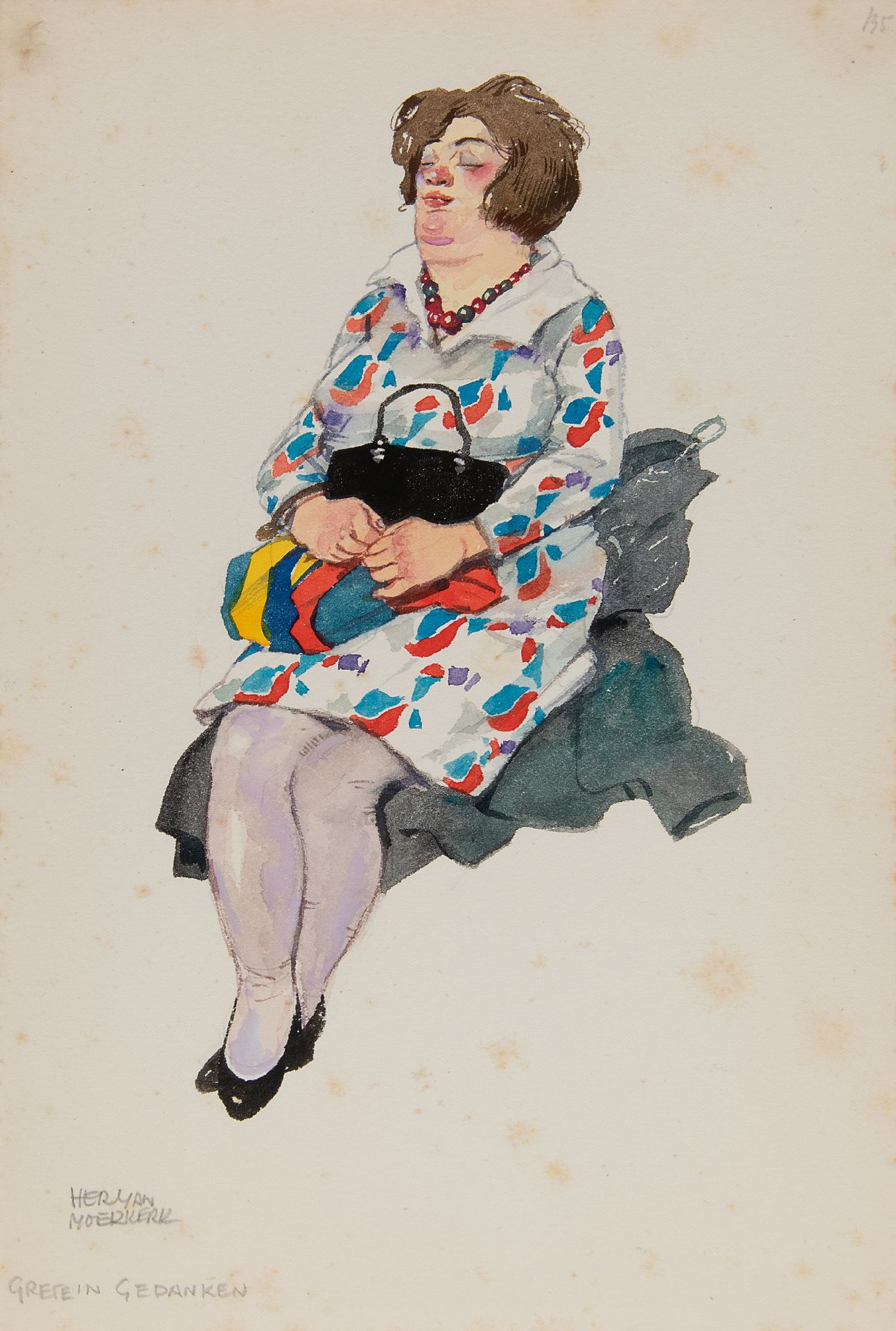 Herman Moerkerk Kunstwerk • Aquarell • Zeichnung • zu verkaufen Grete in Gedanken