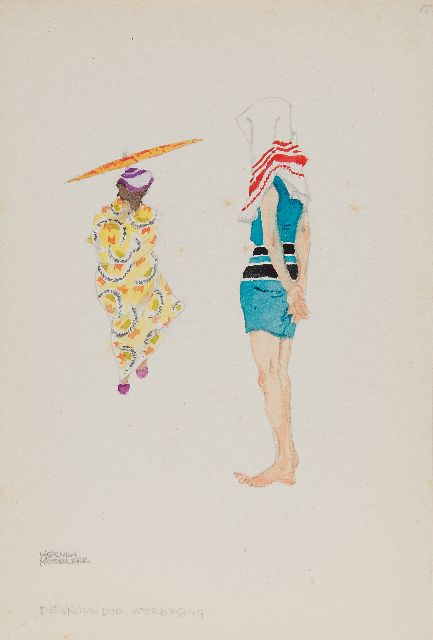 Herman Moerkerk wohnte und arbeitete den Grossteil seines Lebens in ’s-Hertogenbosch. Neben Künstler war er dort auch aktiv im kulturellen Leben als Kunstkritiker und Regisseur. Moerkerk entwarf auch Kostüme für Revues und allegorische Aufzüge. Als Zeichner erwarb er sich einen grossen Namen mit seinen Karikaturen. 1928 zog er nach Haarlem um , wo er als Verleger/ Illustrator bei der Katholieke Illustratie arbeitete. In jener Periode fuhr er fort mit der künstlerischen Unterstützung von Veranstaltungen in der Stadt ’s-Hertogenbosch und erwarb er sich nationalen Ruf mit seinen Werken. Moerkerk malte ausgezeichnete Porträts, Stilleben, Brabanter Interieure und Dorf- und Stadtansichten und er war auch ein geistreicher Illustrator. Auch zeichnete er Karikaturen von Bürgern aus ’s-Hertogenbosch und Brabanter Volkstypen.