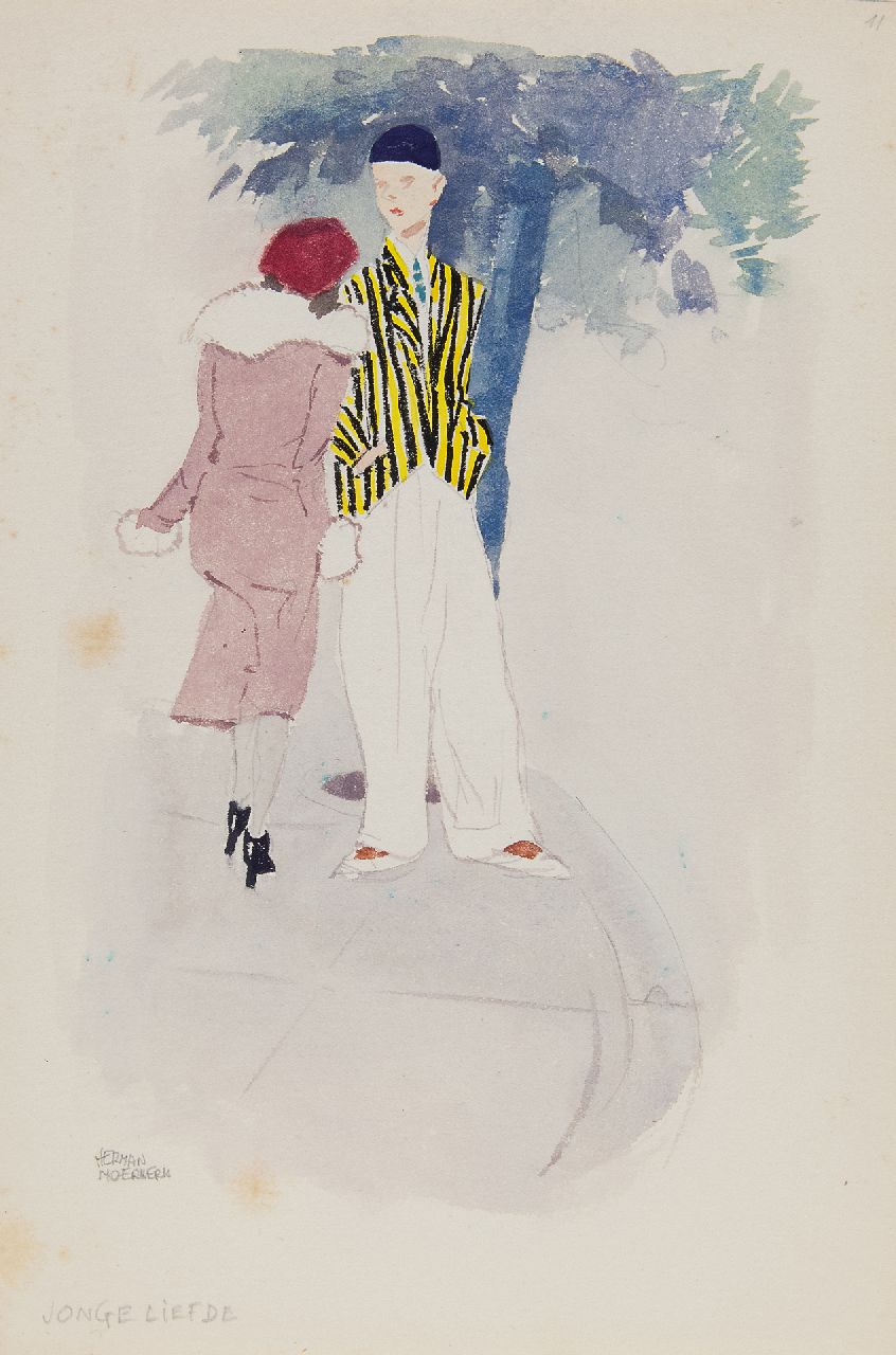 Herman Moerkerk Kunstwerk • Aquarell • Zeichnung • zu verkaufen Junge Liebe