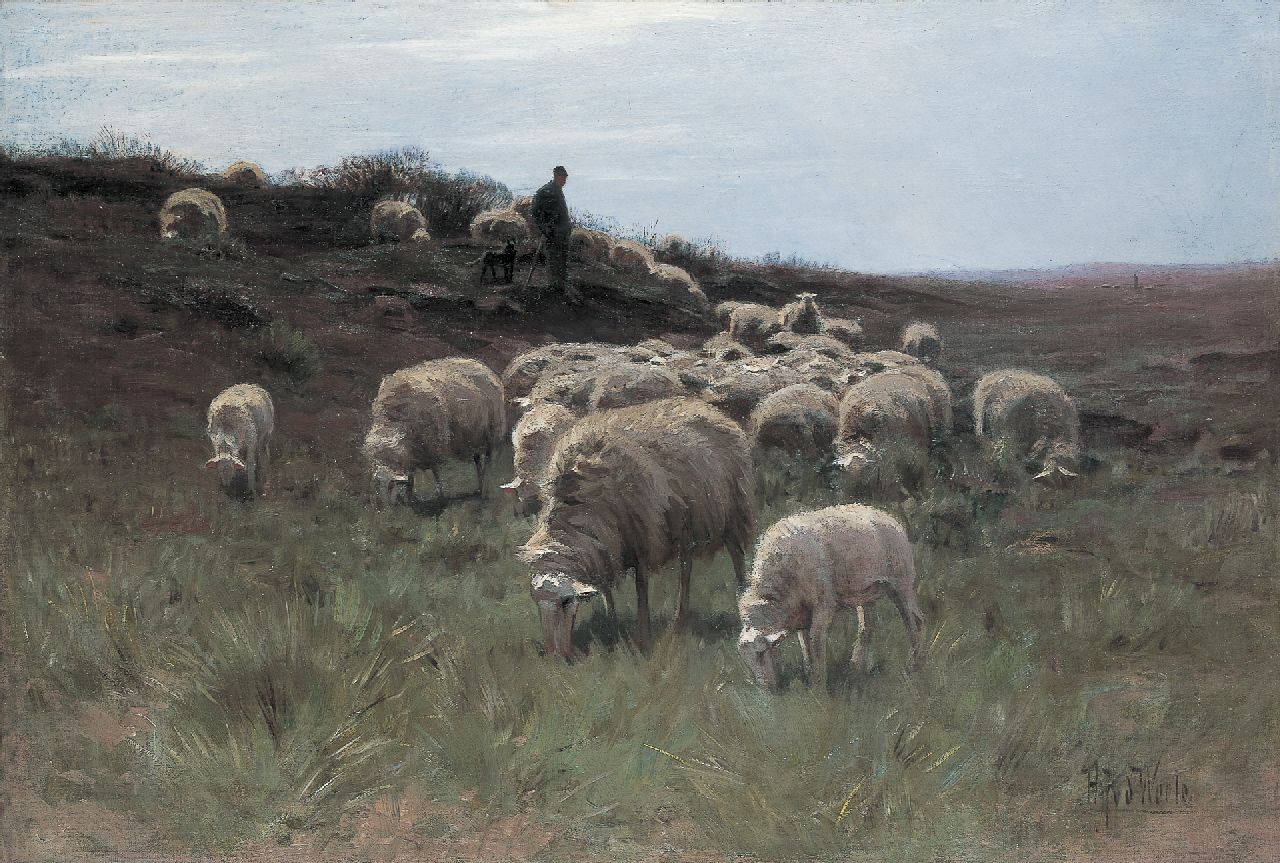 Herman van der Weele Kunstwerk • Gemälde • zuvor zu verkaufen A shepherd and flock