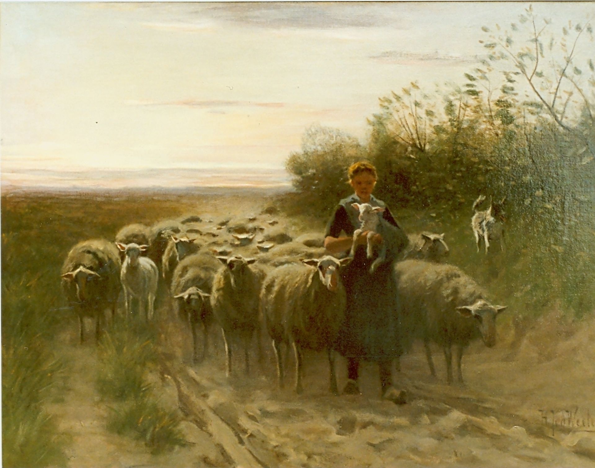 Herman van der Weele Kunstwerk • Gemälde • zuvor zu verkaufen A shepherdess and her flock