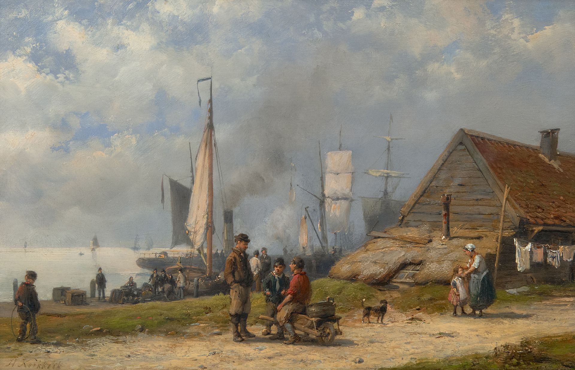 Hermanus Koekkoek Kunstwerk • Gemälde • zuvor zu verkaufen Fischer und Reisenden an einem Hafen