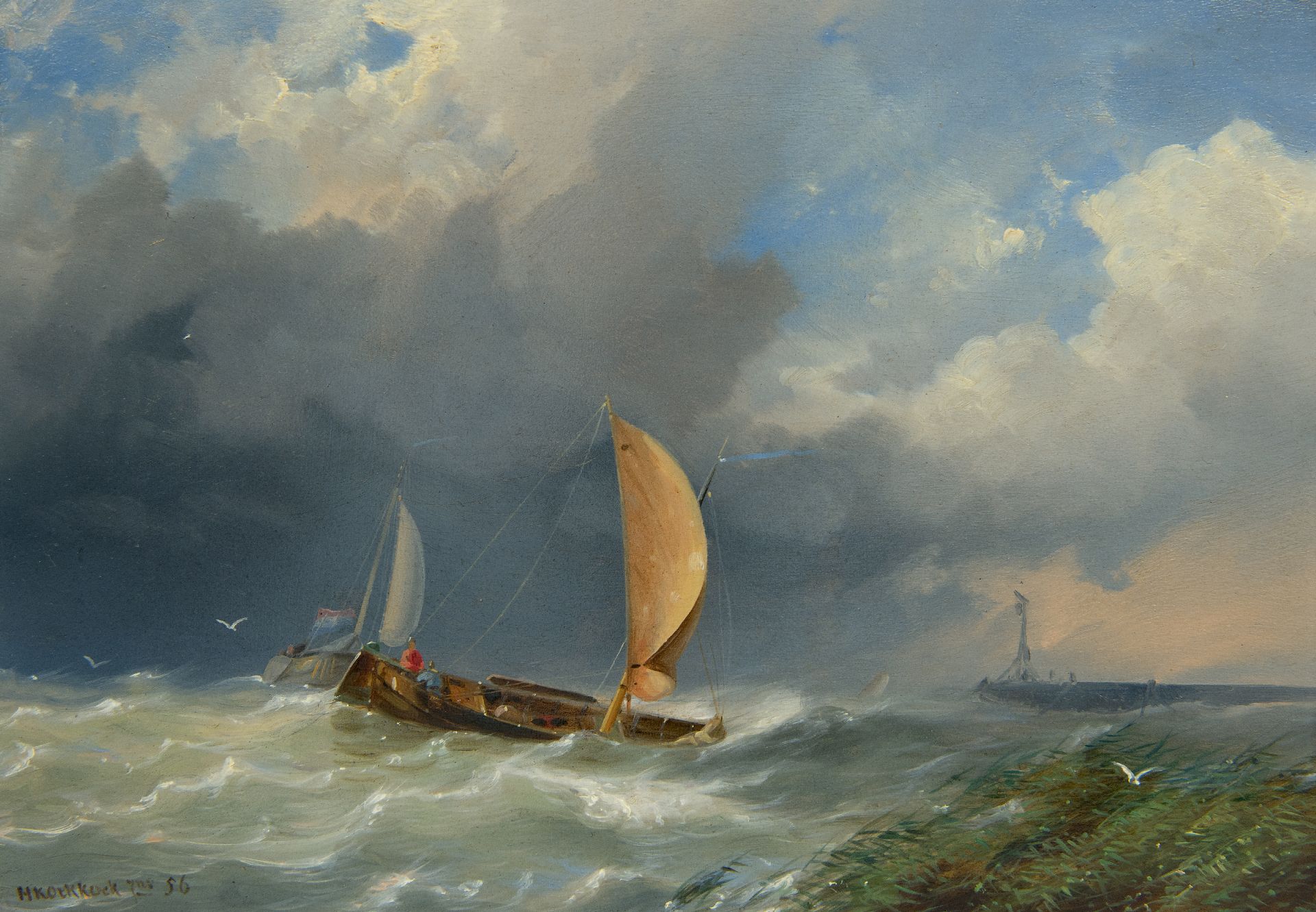 Hermanus Koekkoek jr. Kunstwerk • Gemälde • zuvor zu verkaufen Schiffe im Sturm an einer Hafeneinfahrt