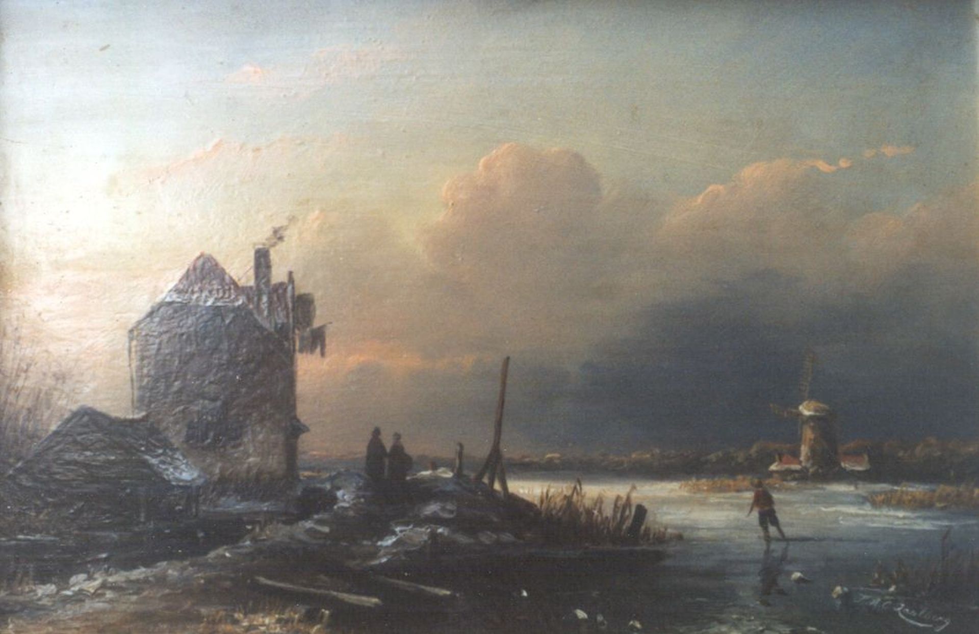 Hester Adriana Cornelia Zaalberg Kunstwerk • Gemälde • zuvor zu verkaufen A winter landscape with skaters on the ice