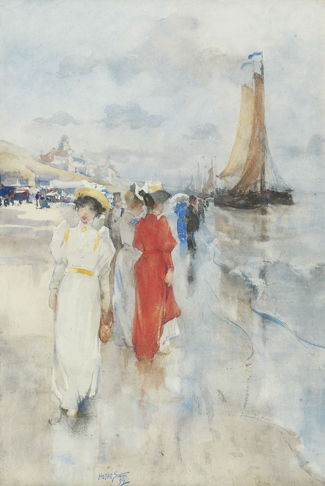 Hobbe Smith Kunstwerk • Aquarell • Zeichnung • zuvor zu verkaufen Elegant ladies strolling on the beach, Scheveningen