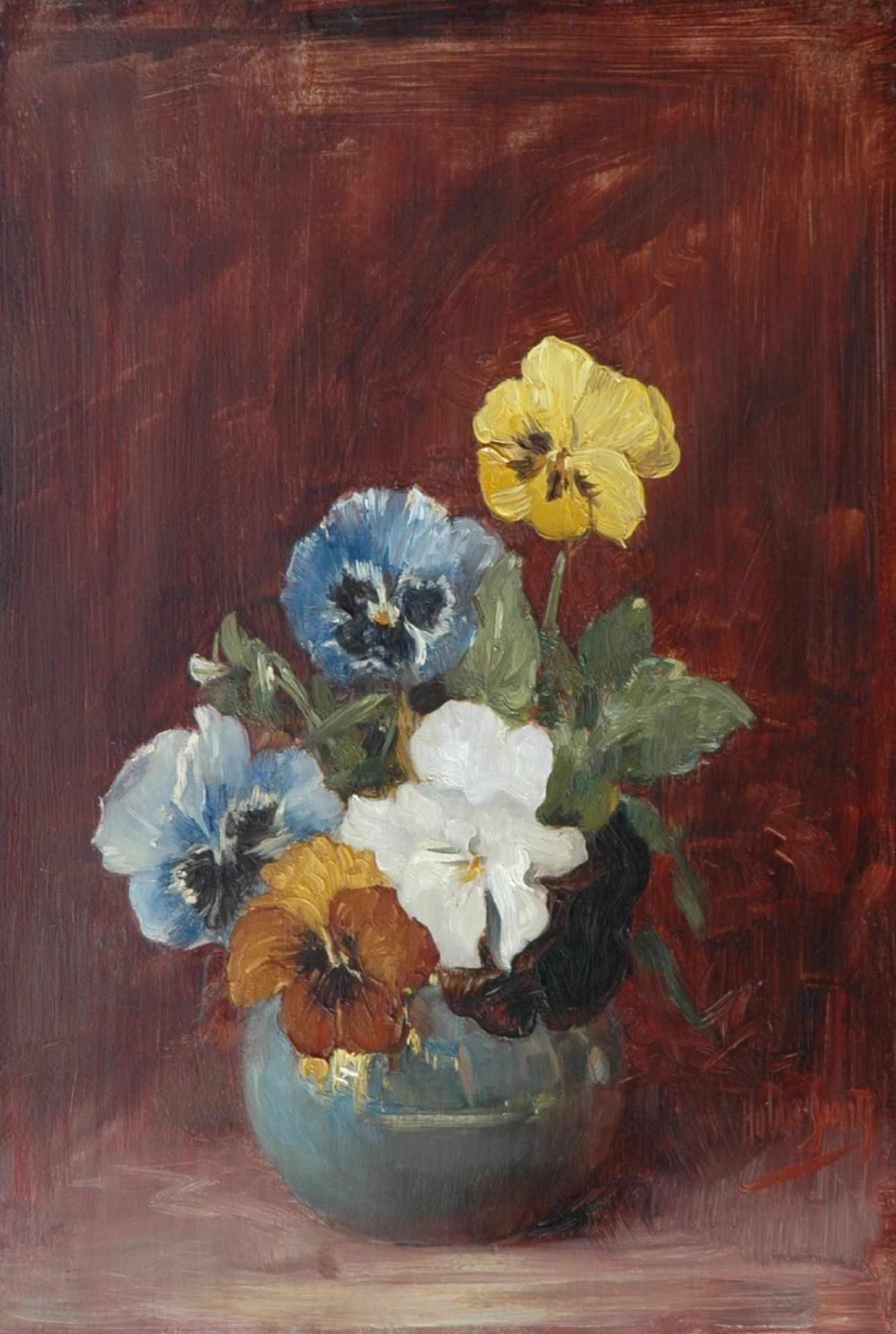 Hobbe Smith Kunstwerk • Gemälde • zuvor zu verkaufen Violets in a blue vase