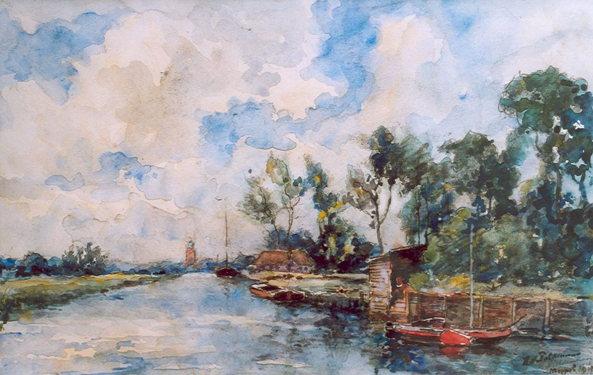 Hugo Polderman Kunstwerk • Aquarell • Zeichnung • zuvor zu verkaufen A canal, Drenthe