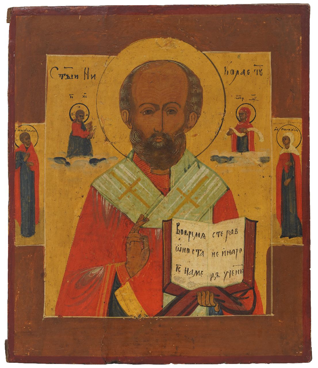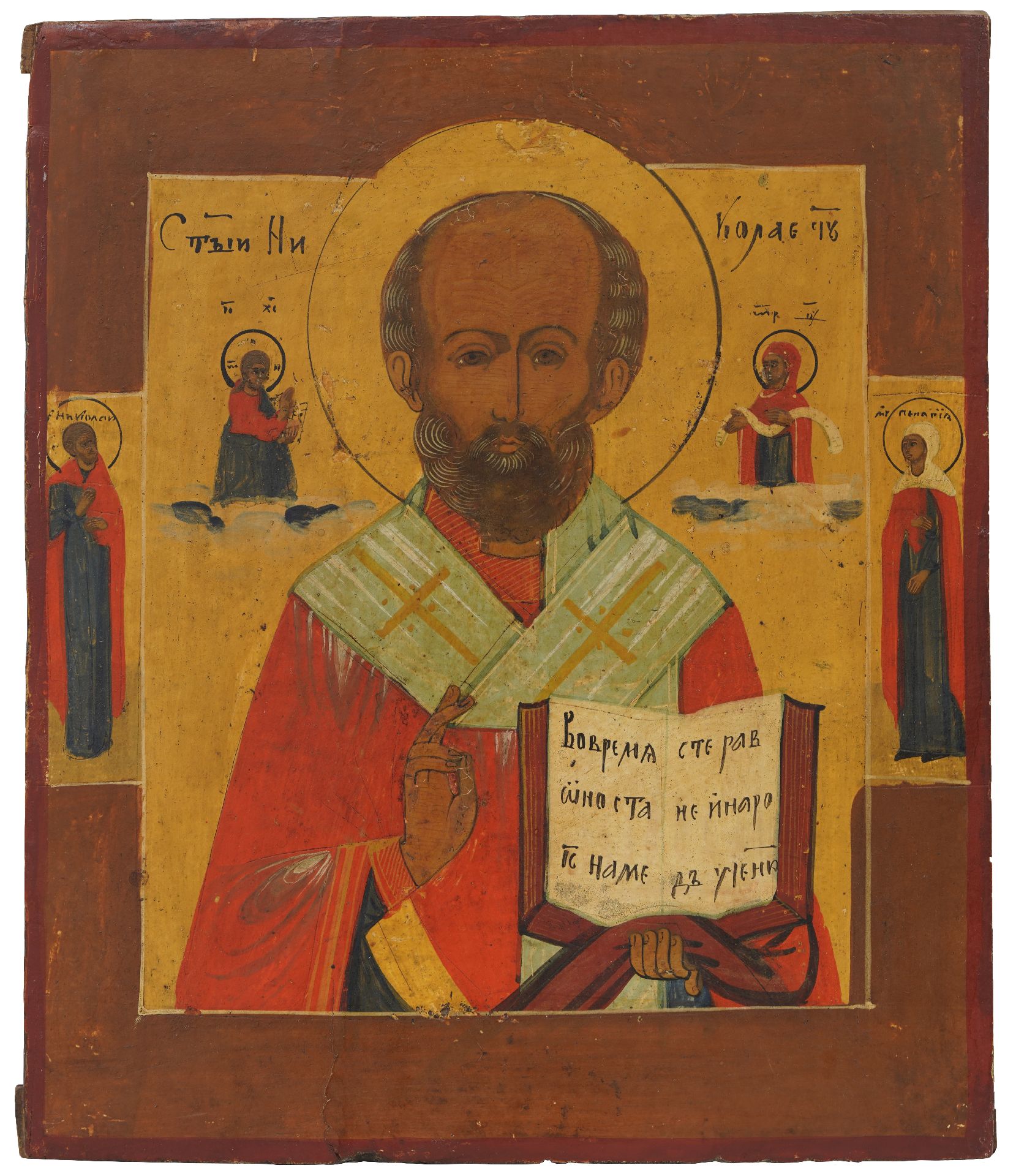 Ikoon Kunstwerk • Bild • Skulptur • zu verkaufen Sankt Nikolaus mit Schutzheiligen