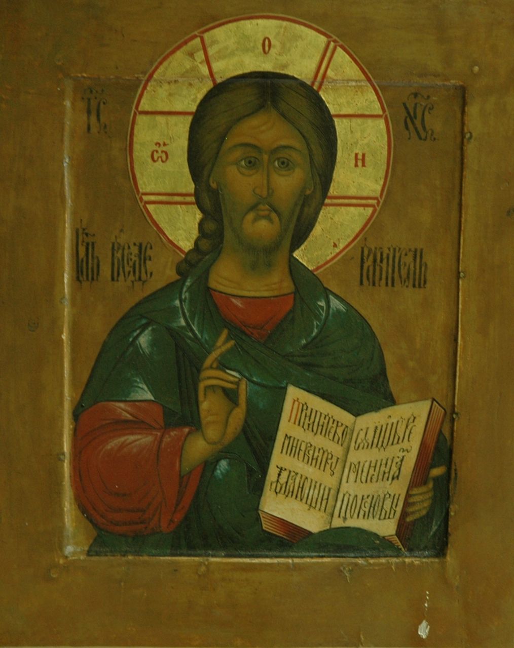 Ikoon Kunstwerk • Gemälde • zuvor zu verkaufen Christus Pan tocrator, Russisch aus der 2. Hälfte des 19. Hahrhundert