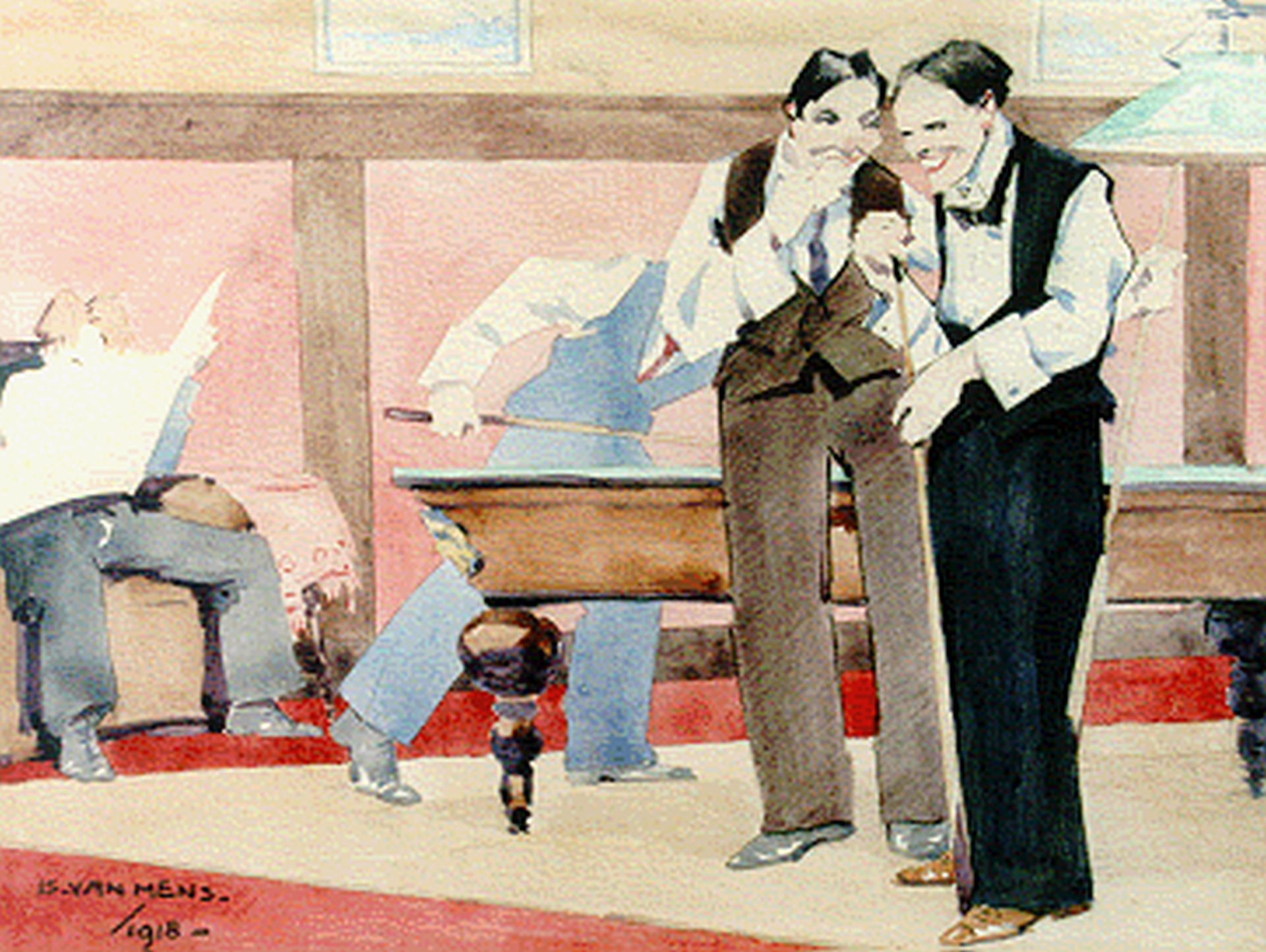 Is Mens Kunstwerk • Aquarell • Zeichnung • zuvor zu verkaufen A game of billiards