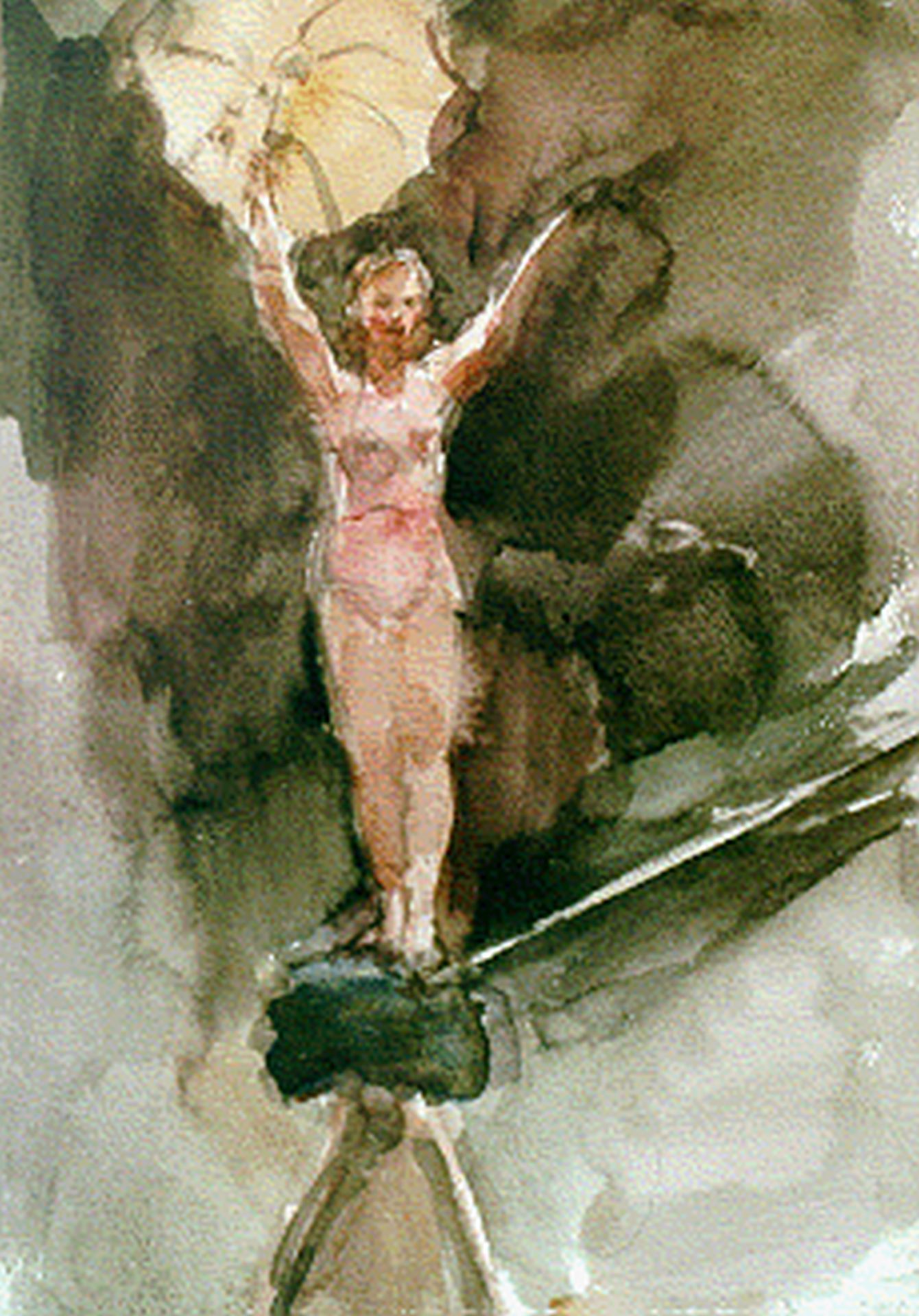 Isaac Israels Kunstwerk • Aquarell • Zeichnung • zuvor zu verkaufen A tightrope dancer, La Scala Theatre, Milan