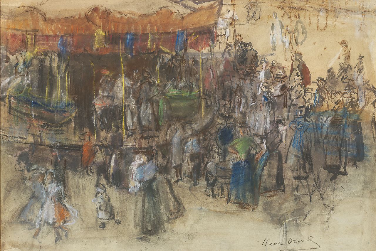 Isaac Israels Kunstwerk • Aquarell • Zeichnung • zuvor zu verkaufen Merry-go-round, Paris