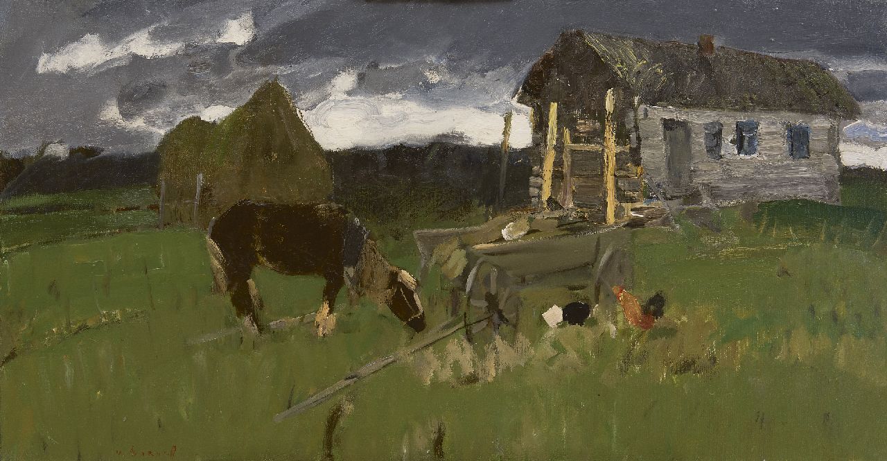 Ivan Mikhailovich Varichev Kunstwerk • Gemälde • zu verkaufen Am Rande des Dorfes