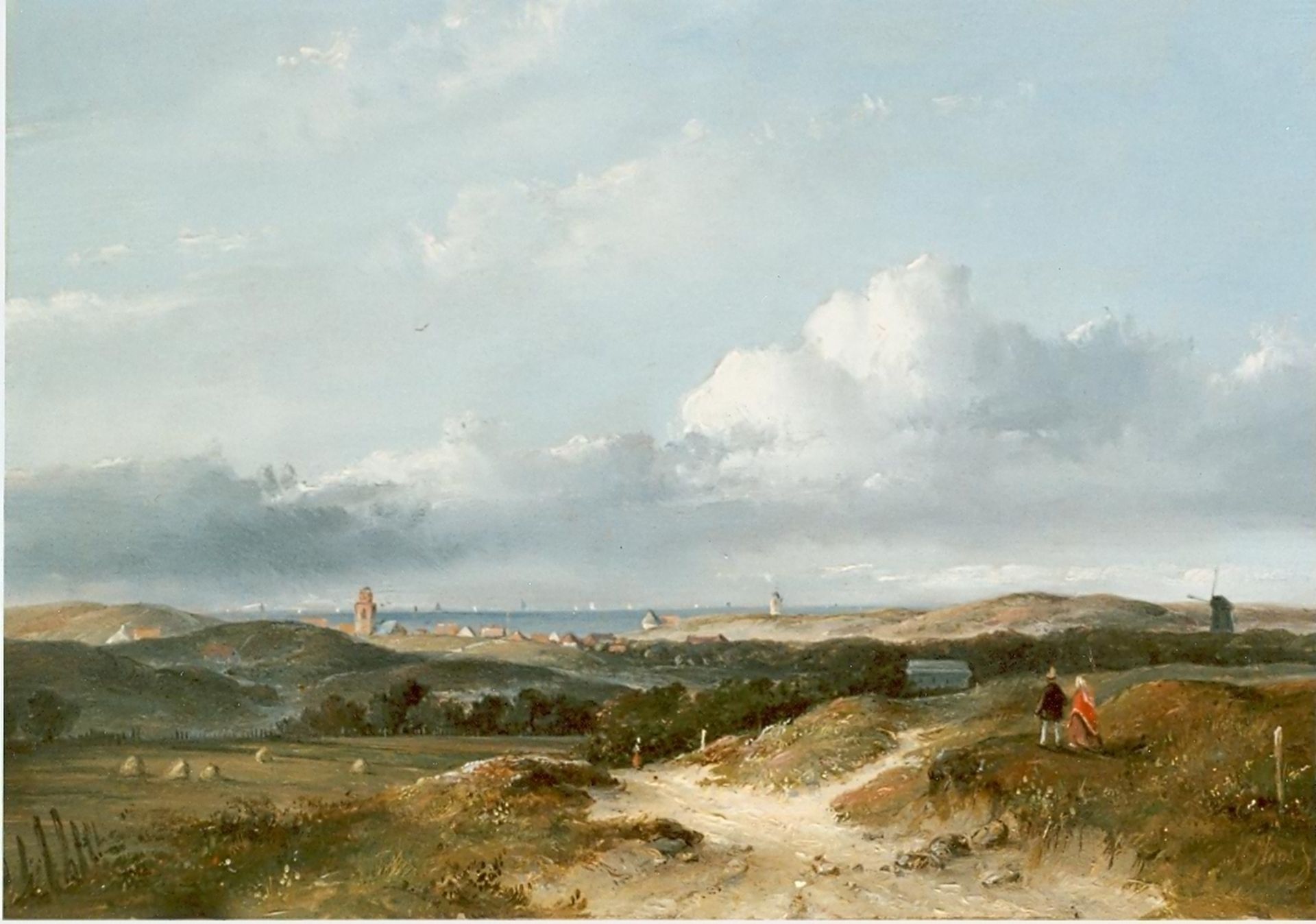 J.G. Hans Kunstwerk • Gemälde • zuvor zu verkaufen Panoramic landscape, Katwijk aan Zee in the distance