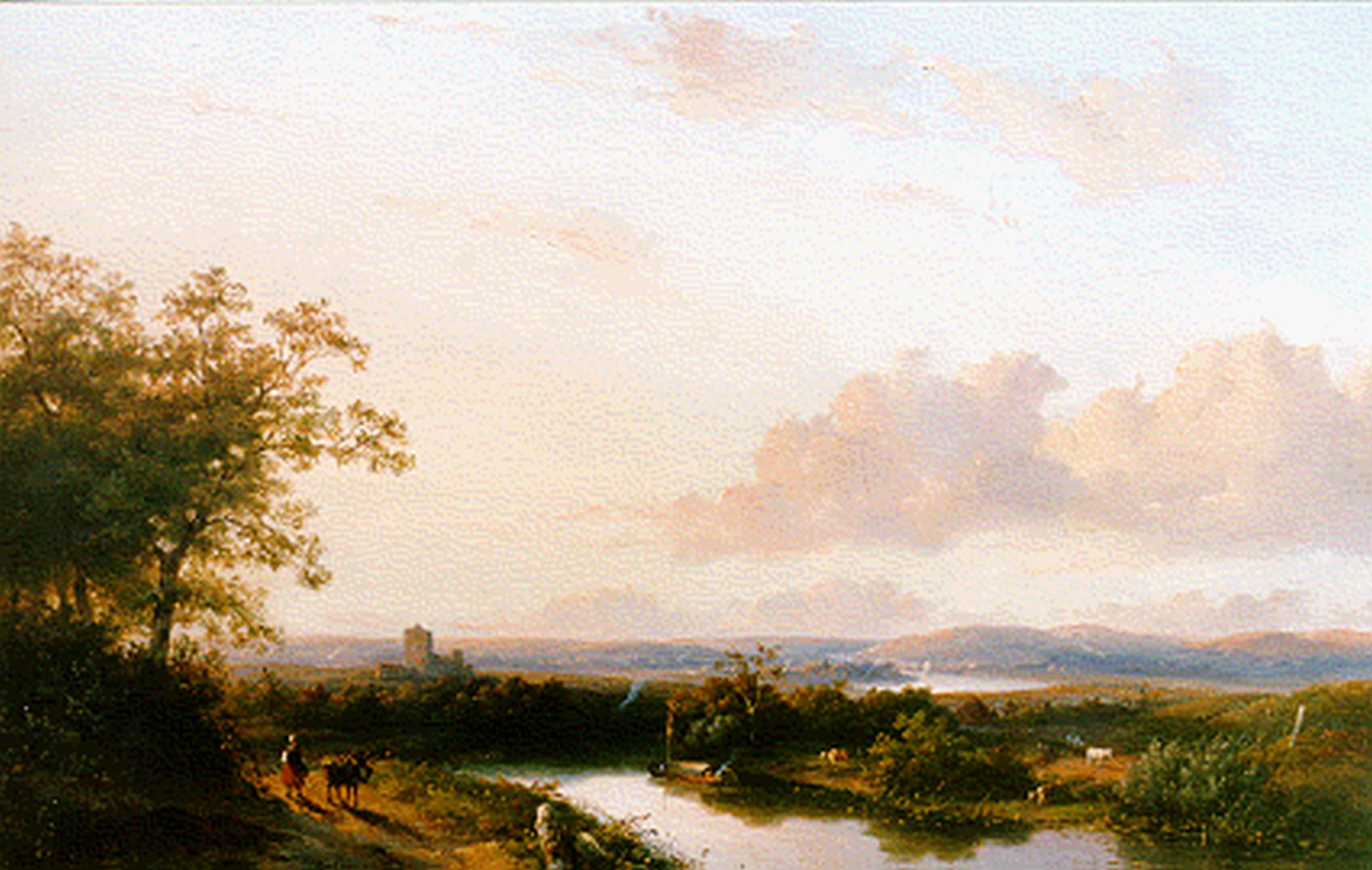 J.G. Hans Kunstwerk • Gemälde • zuvor zu verkaufen A panoramic river landscape