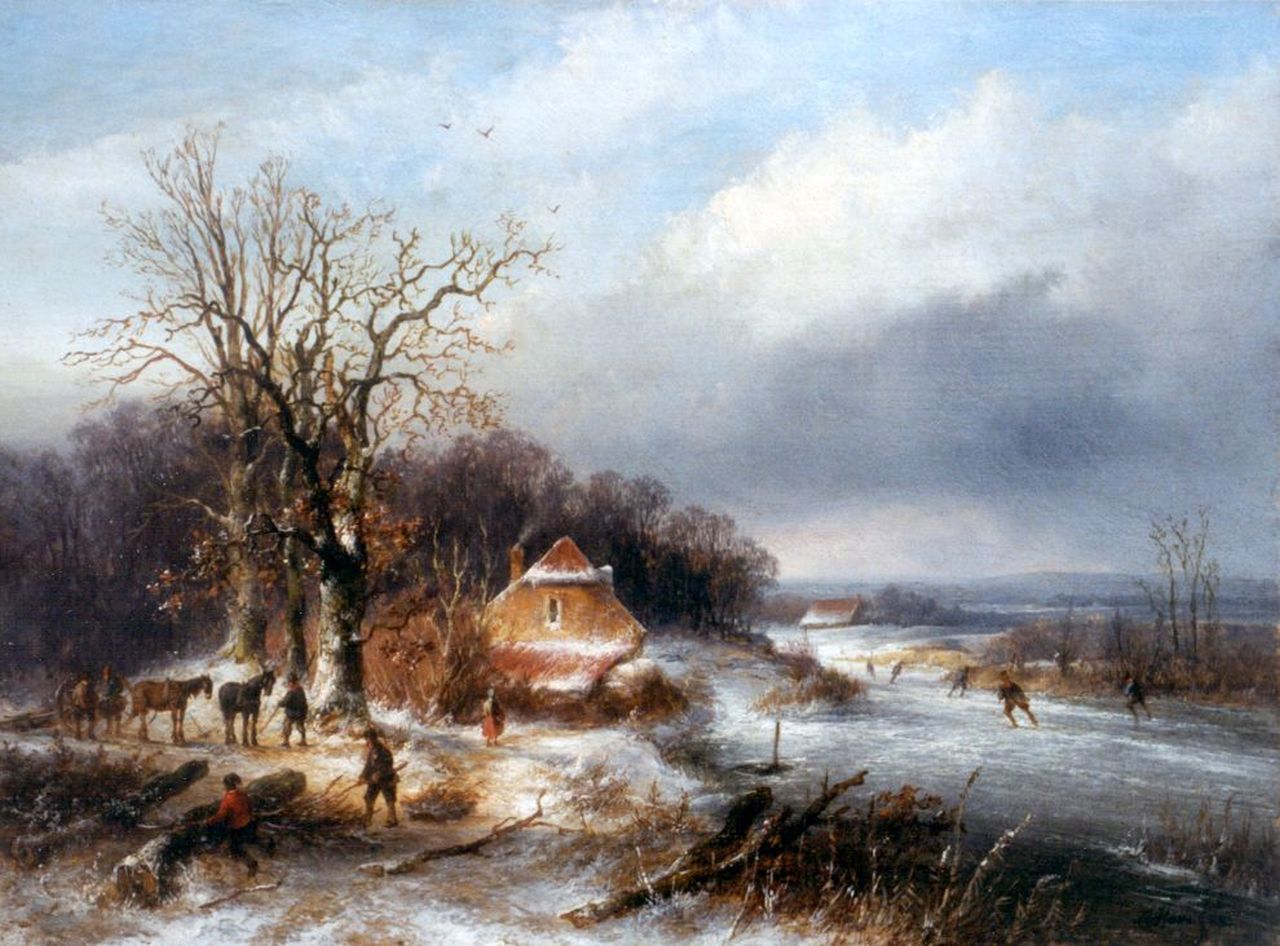 J.G. Hans Kunstwerk • Gemälde • zuvor zu verkaufen A winter landscape with skaters on the ice