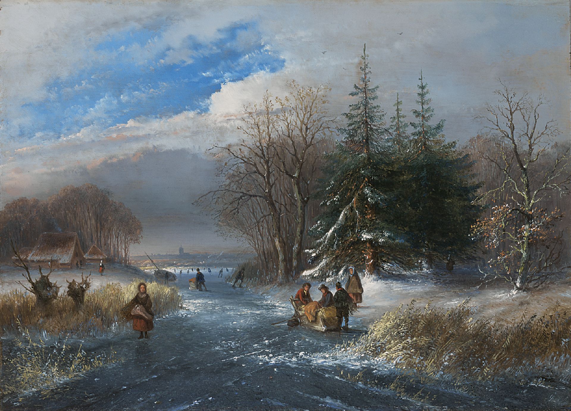 A winter landscape with skaters