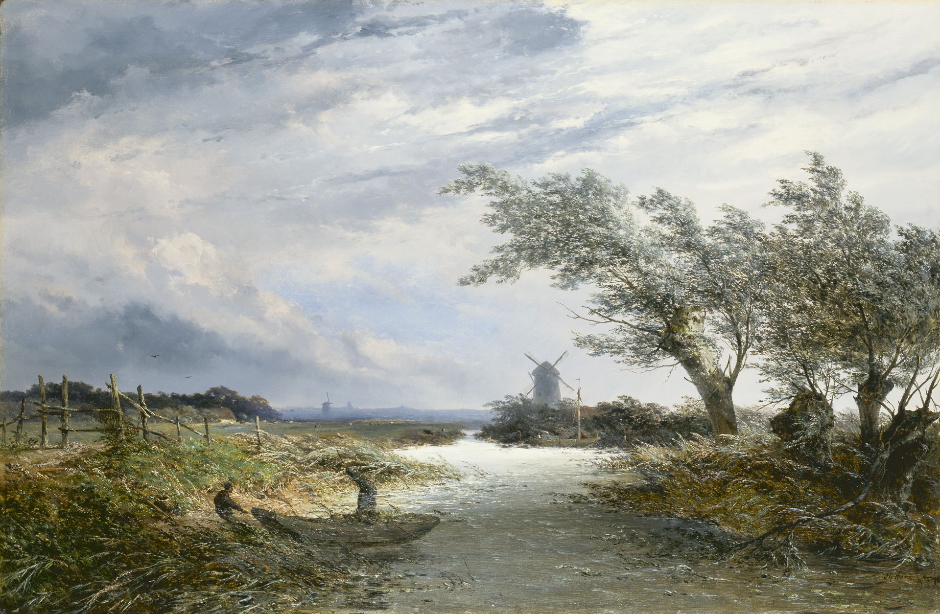 Landscape with pollard willows and a mill