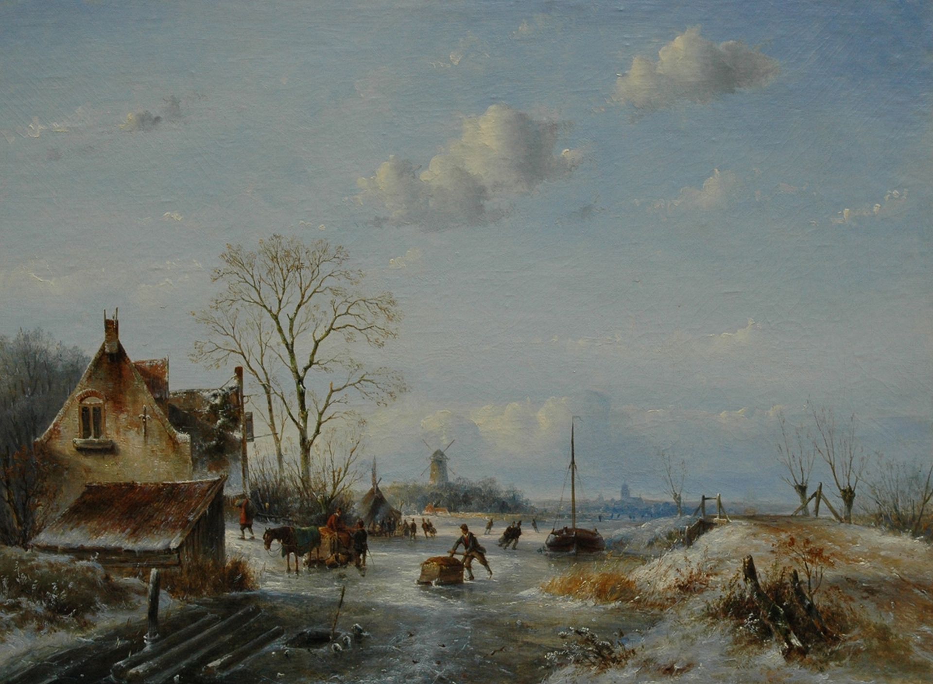 J.G. Hans Kunstwerk • Gemälde • zuvor zu verkaufen Winter landscape with skaters