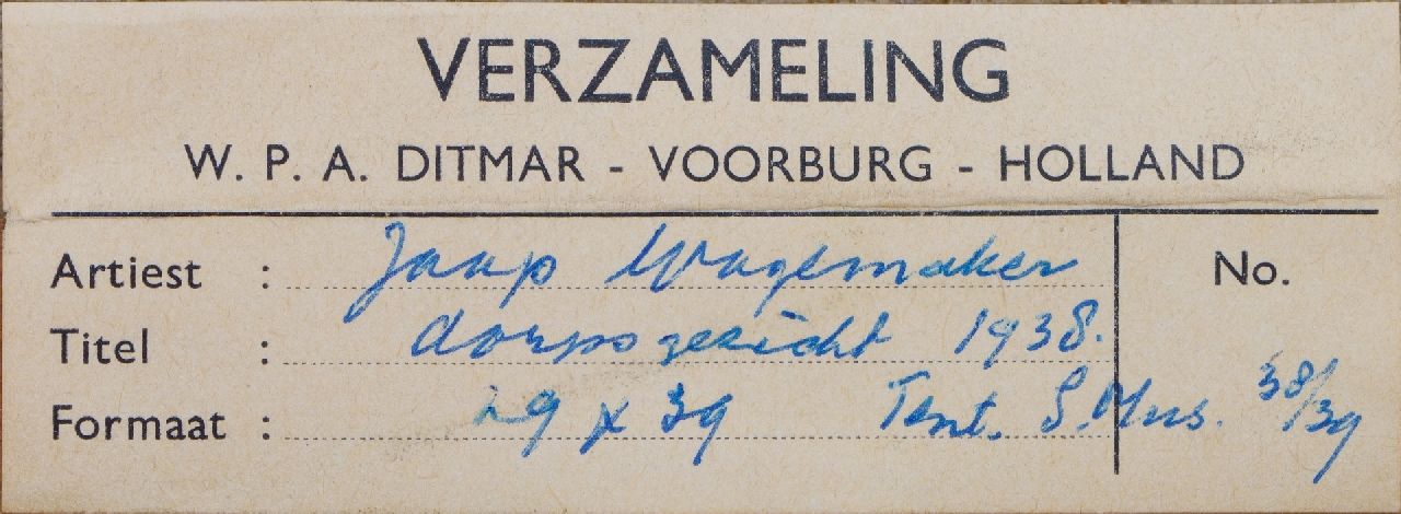 Literatur: Simon den Heijer, Marike van der Knaap, ‘Jaap Wagemaker. Schilder van het elementaire’, Zwolle 1995, pag. 138, cat.nr. SO.00-22