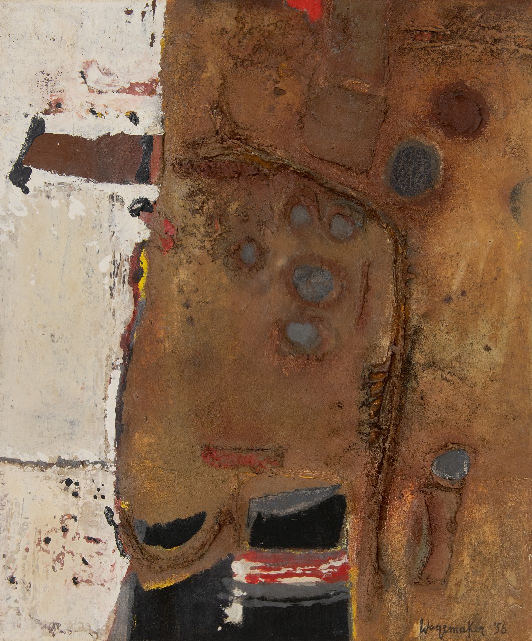 Jaap Wagemaker ist vor allen Dingen als Materiemaler bekannt. In dieser Eigenschaft gehörte er zusammen mit Jean Dubuffet, Alberto Burri und Antoni Tàpies zu der kleinen Gruppe von Künstlern die diese Strömung ab Ende der fünfziger Jahre weltweit repräsentieren. In der vorangehenden Periode, ab 1946 experimentierte er unter dem Einfluss der Werke von Paul Klee mit einer höchst persönlichen Bildsprache von Phantasiezeichen und Strichen scheinbar willkürlich entstanden waren.