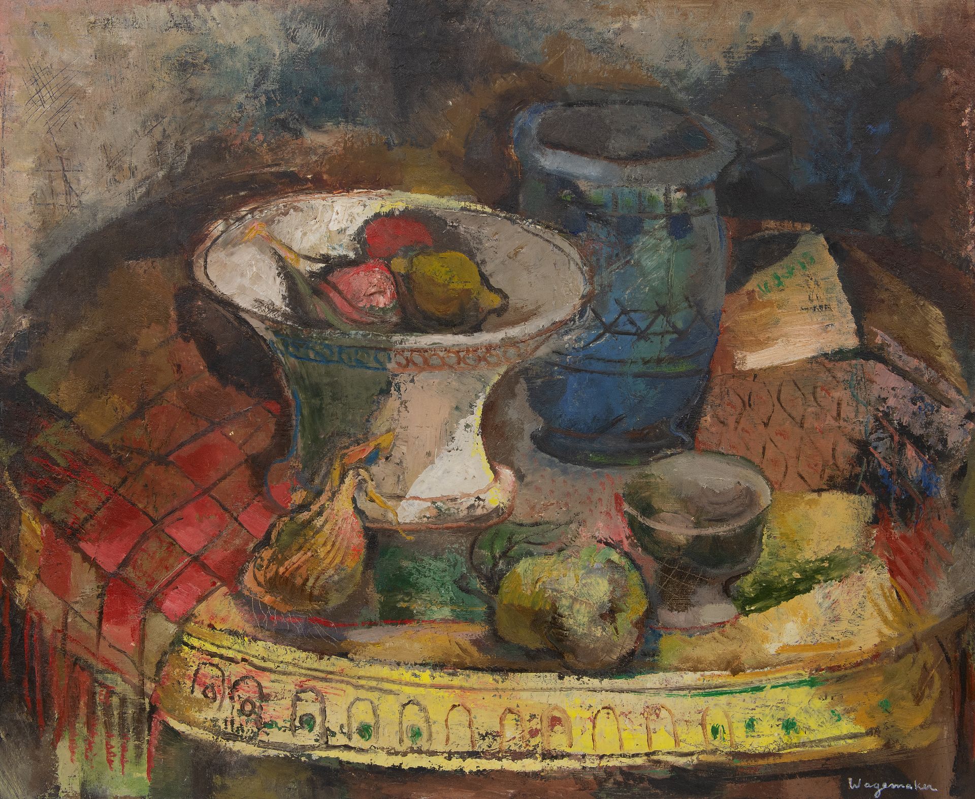 Jaap Wagemaker Kunstwerk • Gemälde • zuvor zu verkaufen Stilleben mit Vasen und Obst