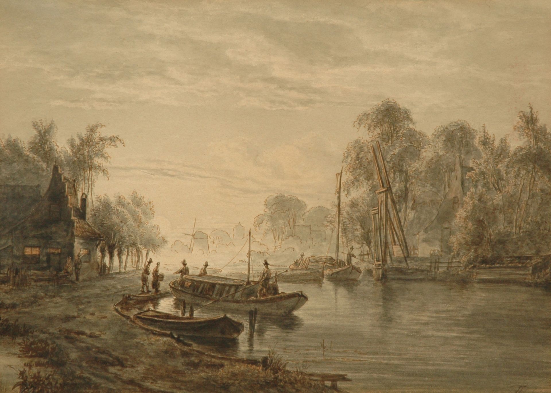 Abels J.Th.  | 'Jacobus' Theodorus Abels, Figures at daybreak, Feder und Pinsel in brauner und schwarzer Tinte auf Papier 23,0 x 32,5 cm, Unterzeichnet r.u. und datiert 1849
