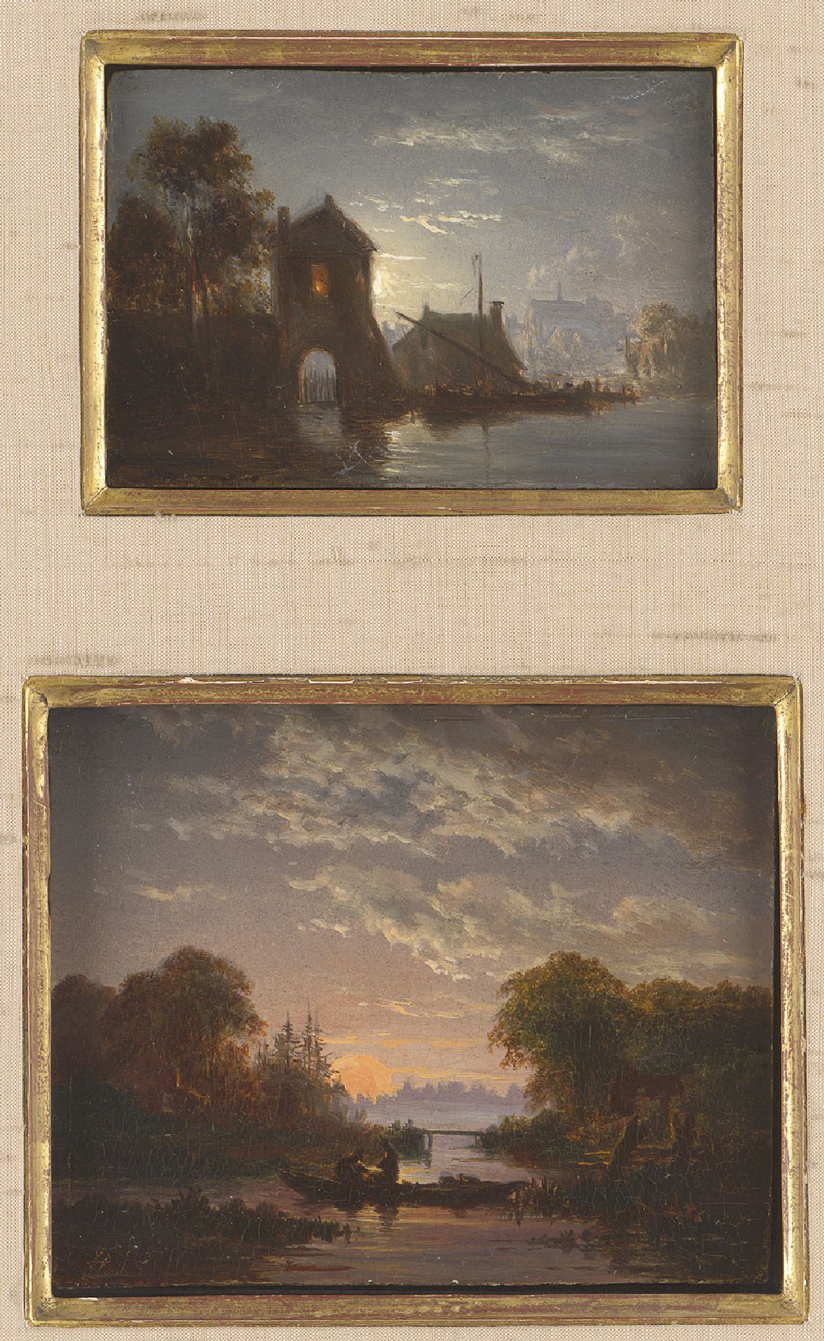 Jacob Abels Kunstwerk • Gemälde • zuvor zu verkaufen Fishing at dawn and A moonlit harbour (together in one frame)