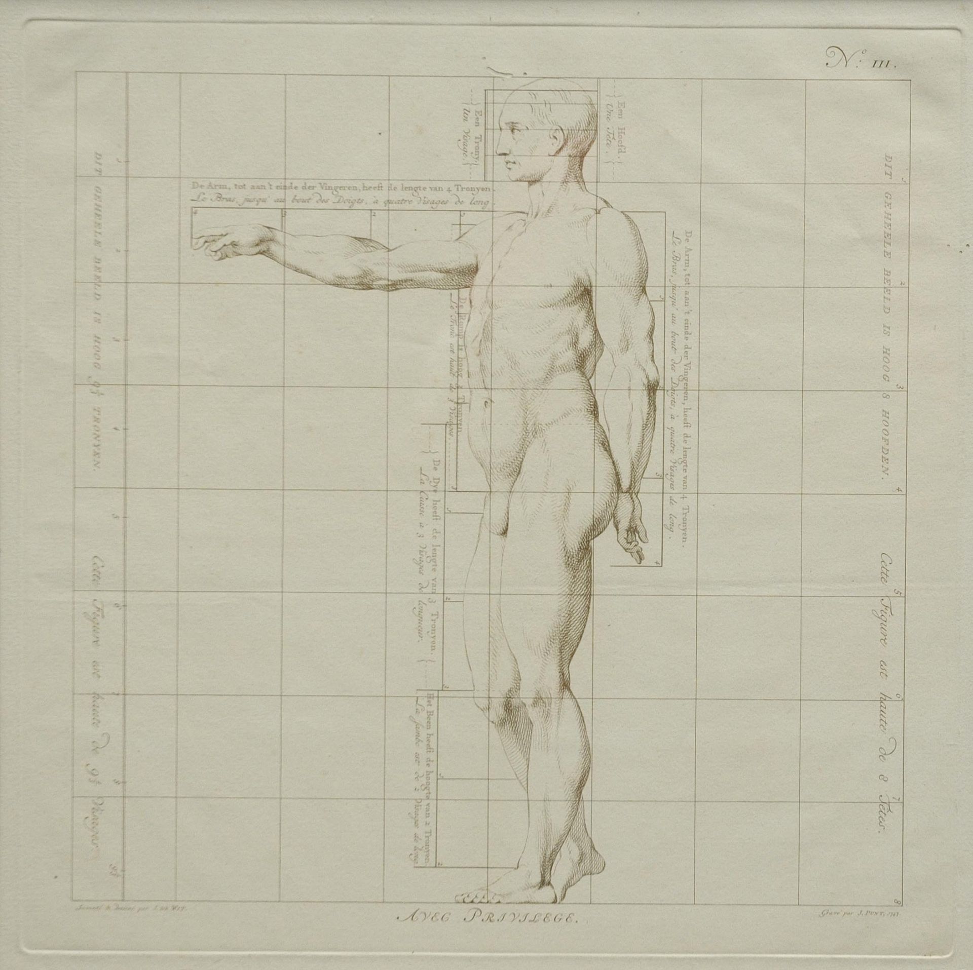 Jacob de Wit Kunstwerk • Grafik • zuvor zu verkaufen Die Idealmaße des menschlichen Körpers - Mann ( III)
