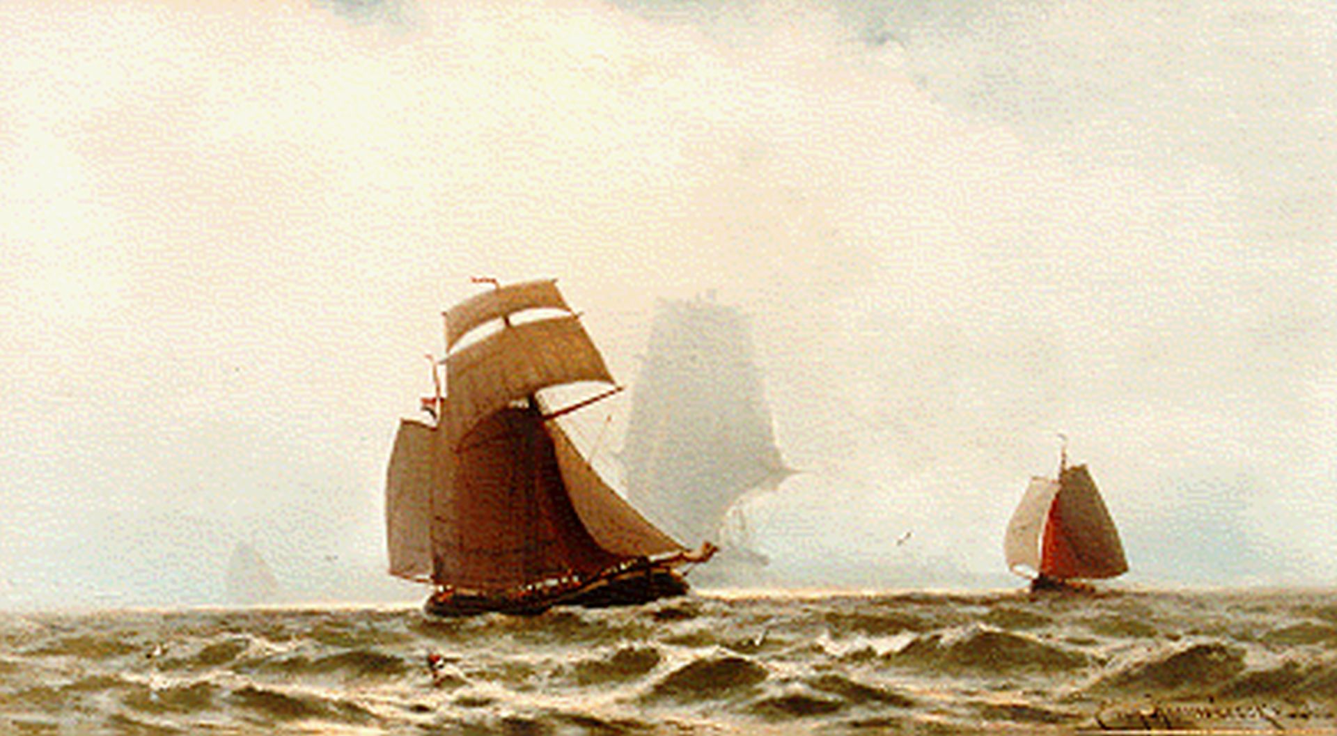 Jacob Eduard van Heemskerck van Beest Kunstwerk • Gemälde • zuvor zu verkaufen Flatboats offshore