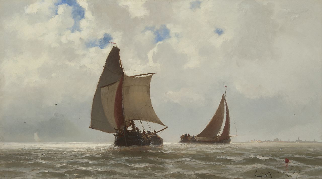 Jacob Eduard van Heemskerck van Beest Kunstwerk • Gemälde • zuvor zu verkaufen Lastsegelschiffe auf der Zuiderzee