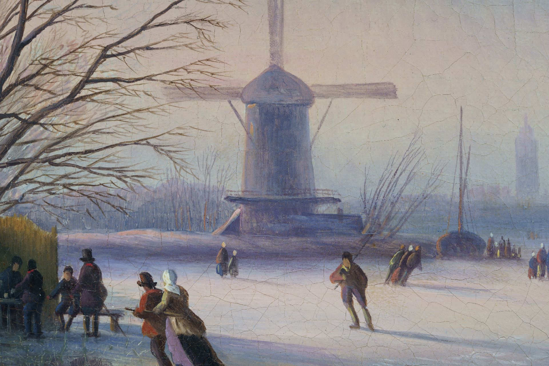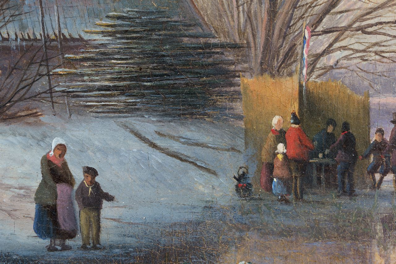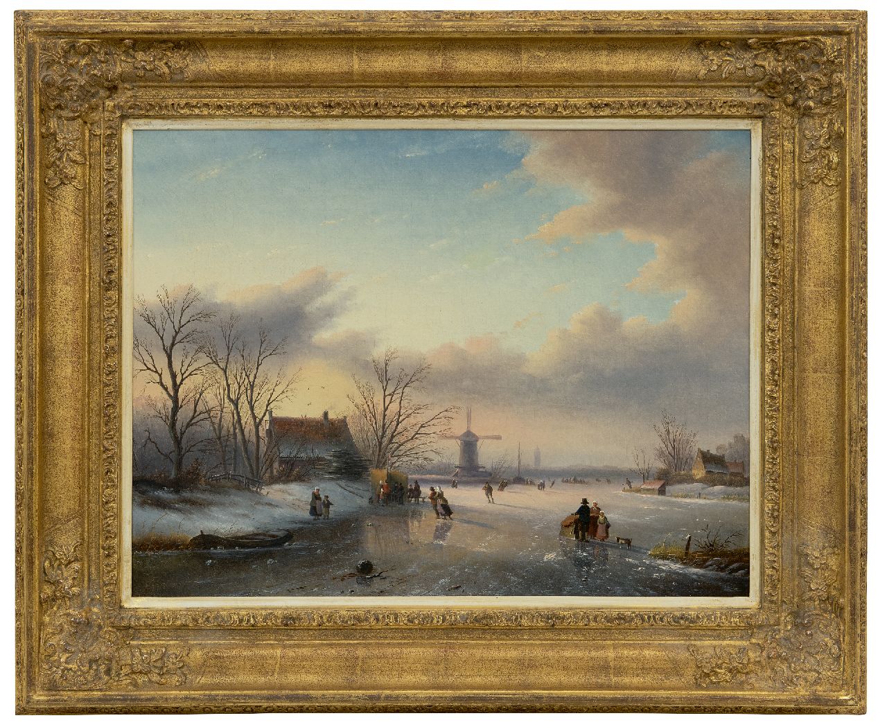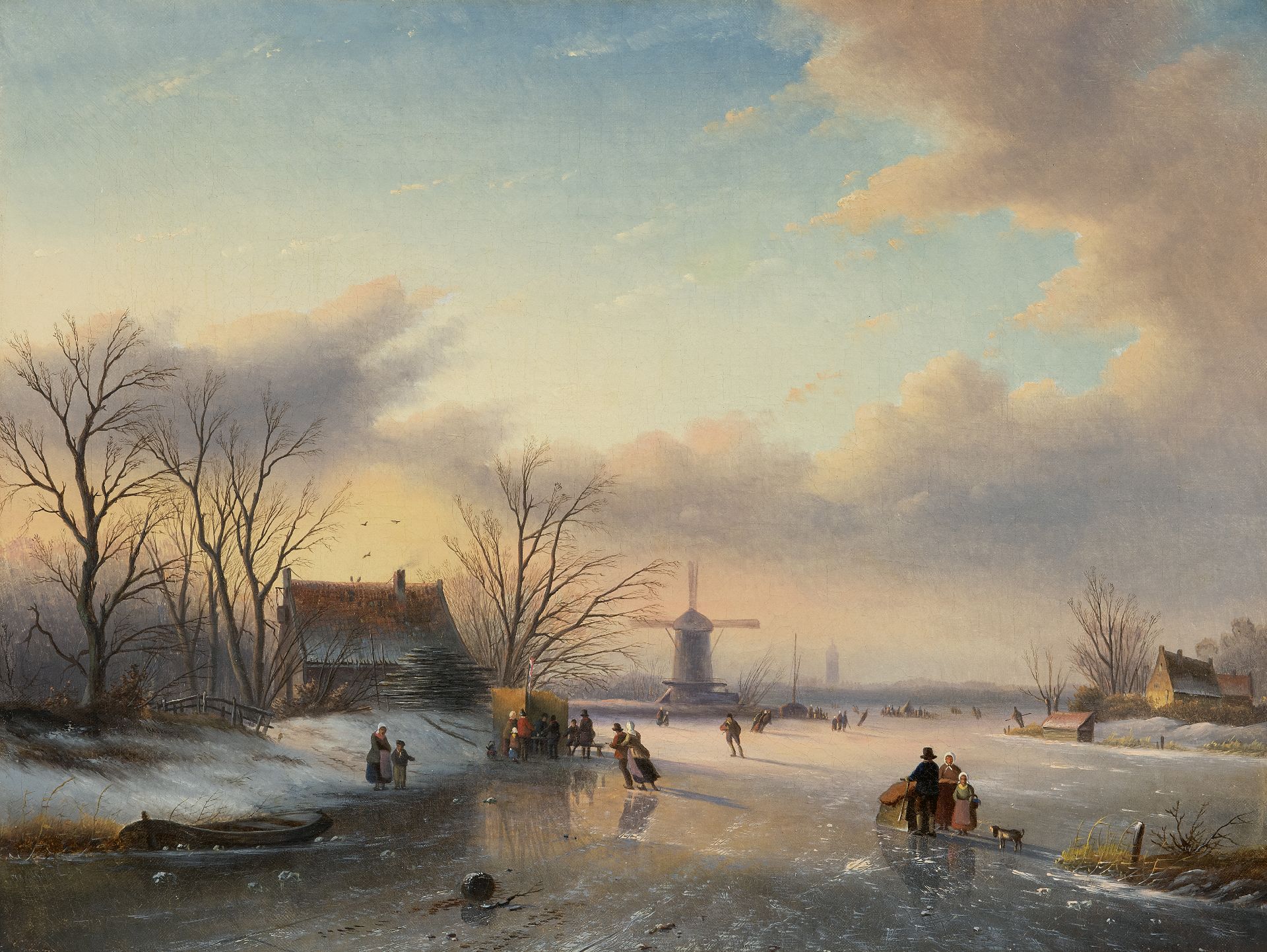 Jacob Jan Coenraad Spohler Kunstwerk • Gemälde • zu verkaufen Winterlandschaft mit Skater